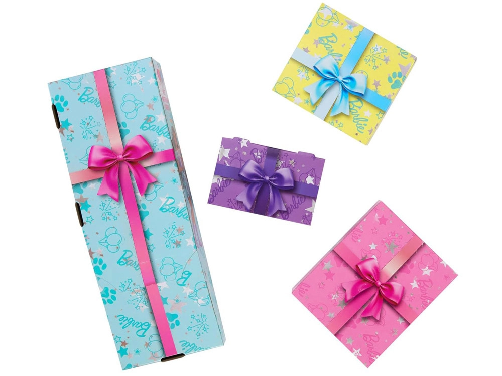 Ανακάλυψε ποιος κρύβεται μέσα! Αυτή η εκδοχή περιλαμβάνει μελαχρινή BARBIE με τιρκουάζ ανταύγειες στα μαλλιά, λαμπερό φόρεμα με μοβ αστέρια και ταιριαστά μοβ παπούτσια. Στο σετ ανήκει επίσης ένα χαριτωμένο κόργκι με μαντηλάκι – ο επίτιμος καλεσμένος σε κάθε πάρτι γενεθλίων.