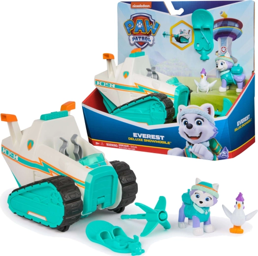 Το σετ περιλαμβάνει λεπτομερή φιγούρα της Everest με χειμερινό εξοπλισμό, το κοτοπουλάκι Chickaletta και θεματικά αξεσουάρ για χιονισμένες περιπέτειες. Τα παιδιά μπορούν να ξεκινήσουν αποστολές διάσωσης, να «κινούνται» πάνω στις ερπύστριες, να ενεργοποιούν τον εκτοξευτή και να σώζουν φίλους – ακριβώς όπως στη σειρά.