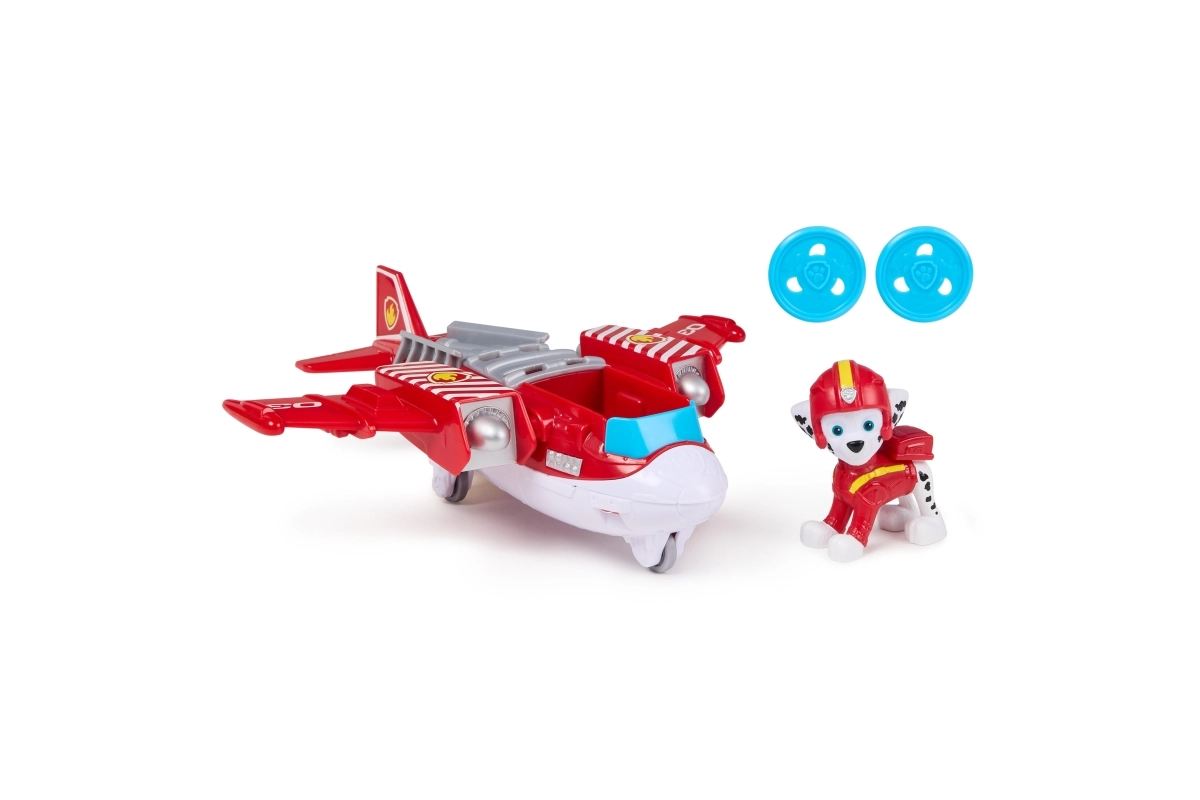 Δέστε τον Marshall στο κόκπιτ, βάλτε τις έλικες να γυρίσουν και ξεκινήστε την αποστολή! Τραβήξτε τον μοχλό στην ουρά και εκτοξεύστε έναν από τους δύο δίσκους για να σώσετε την κατάσταση. Η ανθεκτική πλαστική κατασκευή, τα έντονα χρώματα και οι μελετημένες λεπτομέρειες εξασφαλίζουν μεγάλη αντοχή και άφθονα σενάρια παιχνιδιού εμπνευσμένα από τη σειρά.