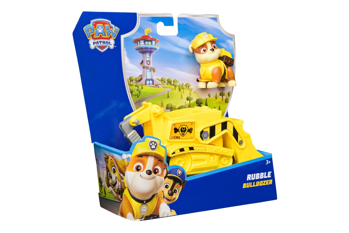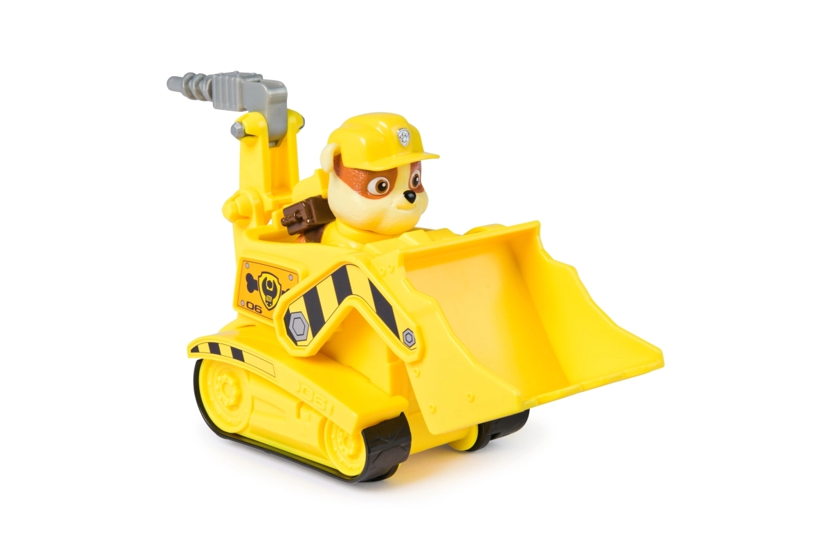 Ο Rubble είναι έτοιμος για δράση! Η κίτρινη μπουλντόζα του με ερπύστριες και φαρδιά λεπίδα αναπαράγει πιστά το γνωστό όχημα από τη σειρά PAW Patrol. Τα παιδιά μπορούν να τοποθετήσουν τη φιγούρα στην καμπίνα, να σπρώξουν το όχημα προς τα εμπρός και με τον μπροστινό κουβά να «σπρώχνουν» και να μετακινούν μικρά αντικείμενα. Ρεαλιστικές λεπτομέρειες, λωρίδες ασφαλείας και το χαρακτηριστικό κράνος προσθέτουν ακόμη περισσότερη μαγεία στο παιχνίδι εργοταξίου.