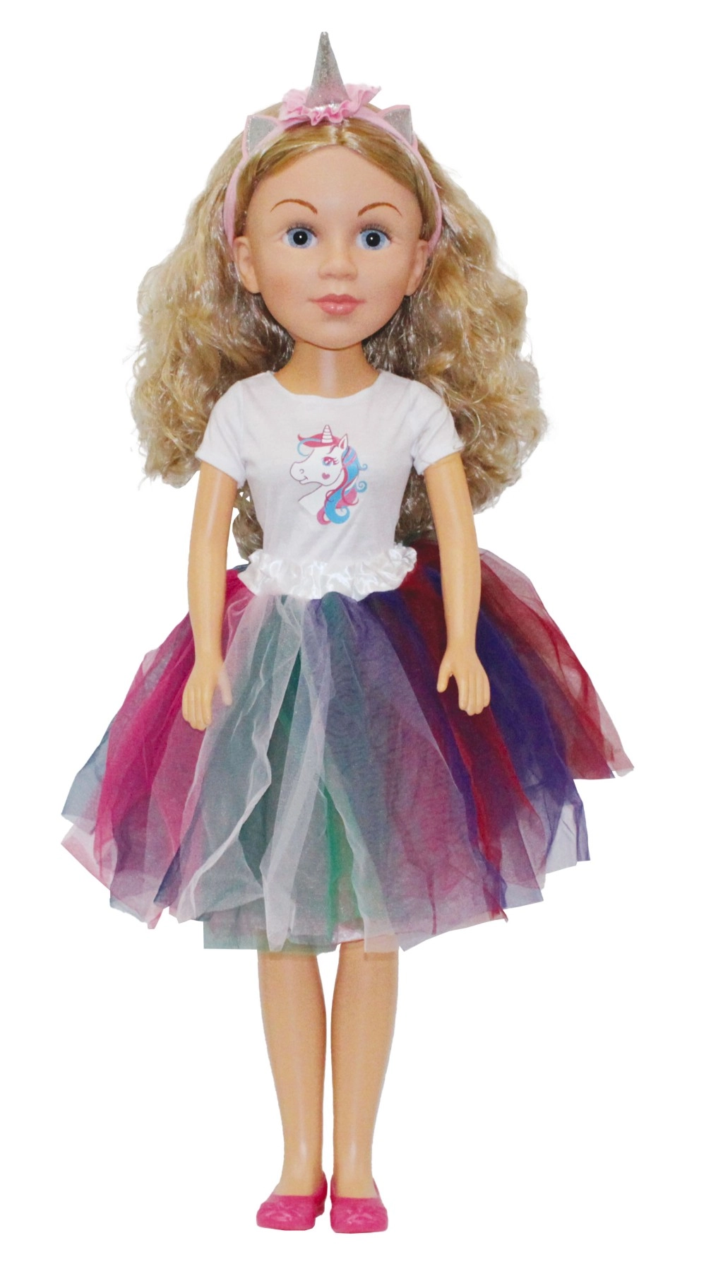 Η υπέροχη κούκλα νύφη ύψους 80 cm είναι ένα εξαιρετικό δώρο για κάθε συλλέκτρια ή μικρή πριγκίπισσα. Με λεπτομερώς δουλεμένα γυάλινα μάτια και μοναδικό νυφικό φόρεμα με σχέδιο μονόκερου, που χαρίζει μαγεία και κομψότητα, θα γίνει το κέντρο της προσοχής σε κάθε συλλογή ή παιχνίδι.