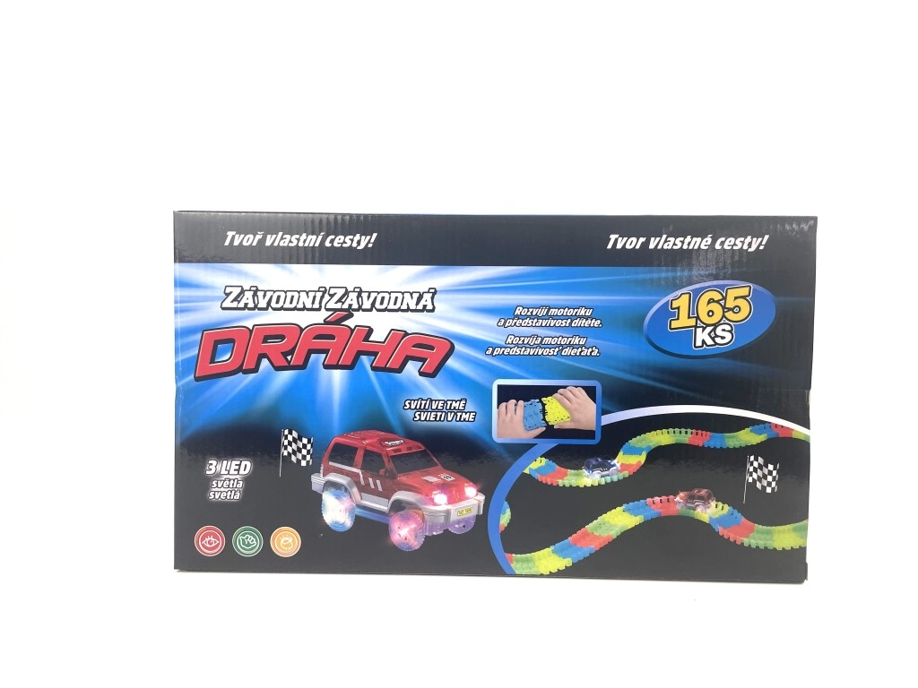 Περιλαμβάνεται επίσης αυτοκινητάκι με φωτισμό LED (9,5 × 5,5 cm), που προσθέτει δυναμισμό και ενθουσιασμό στο παιχνίδι. Η πίστα και το αυτοκινητάκι φωτίζονται στο σκοτάδι, προσφέροντας μια απίστευτη οπτική εμπειρία.