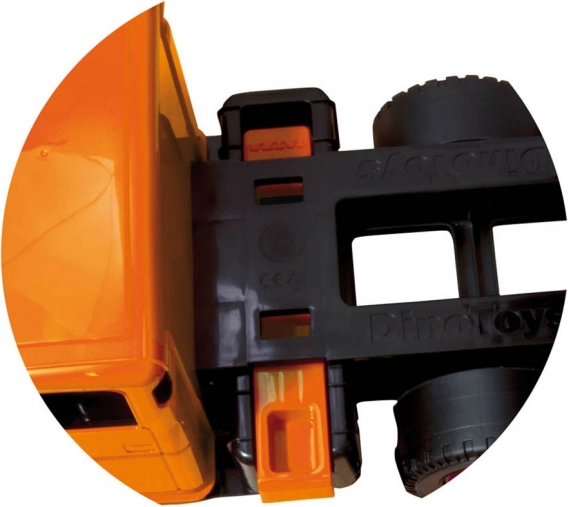 Η καρότσα μπορεί να ασφαλιστεί για αποφυγή ακούσιας ανατροπής και ελέγχεται εύκολα κατά την εκφόρτωση άμμου ή παιχνιδιών.