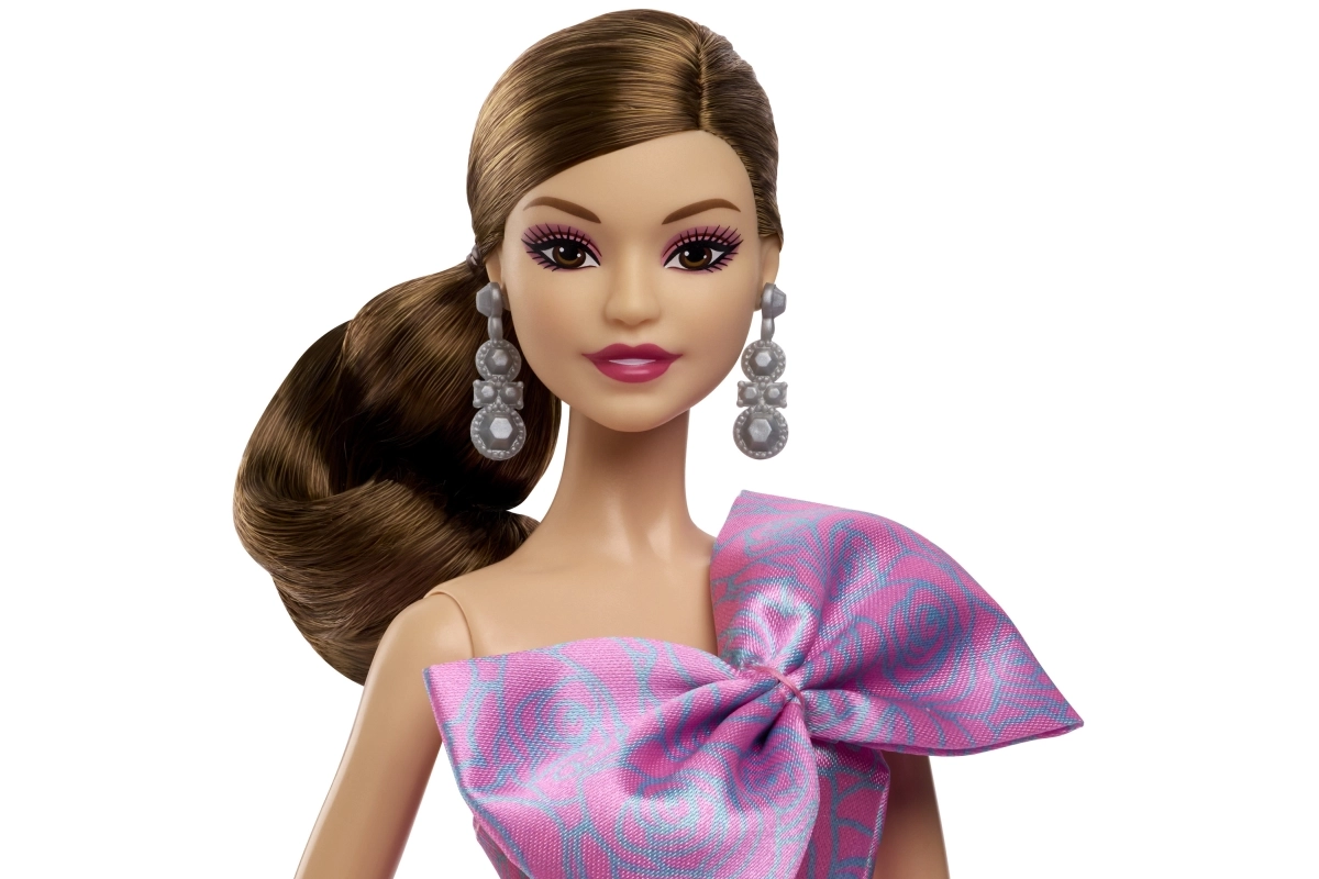 Η Barbie είναι διακοσμημένη με ασημένια σκουλαρίκια που συμπληρώνουν τέλεια το κομψό χτένισμα και τη συνολική εμφάνιση της κούκλας.