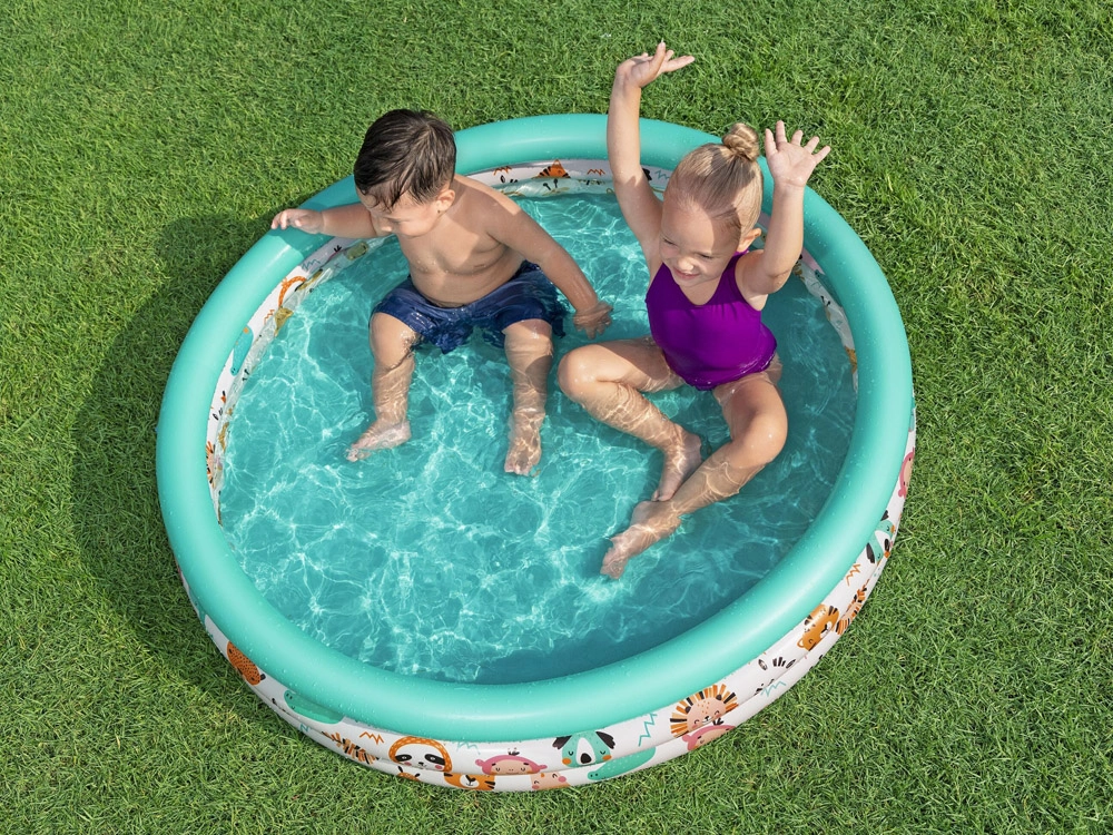 Η παιδική φουσκωτή πισίνα Safari Ζωάκια της Bestway είναι κατασκευασμένη από υψηλής ποιότητας και ανθεκτικό PVC, που εγγυάται μεγάλη διάρκεια ζωής και αντοχή στη φθορά. Με τους τρεις φουσκωτούς δακτυλίους προσφέρει σταθερότητα και άνεση κατά το παιχνίδι. Τα μαλακά τοιχώματα εξασφαλίζουν άνεση και ασφάλεια στις υδάτινες δραστηριότητες του παιδιού σας.