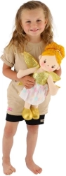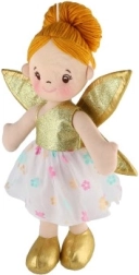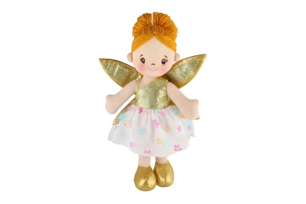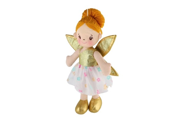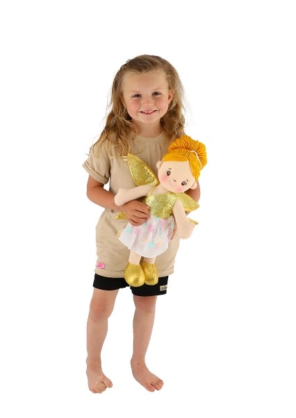 Η κούκλα έχει χρυσά φτερά και όμορφο φλοράλ φόρεμα που εντυπωσιάζει κάθε παιδί.