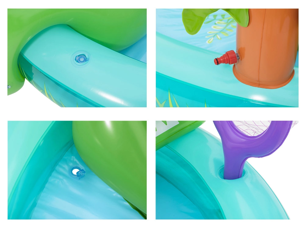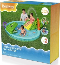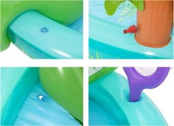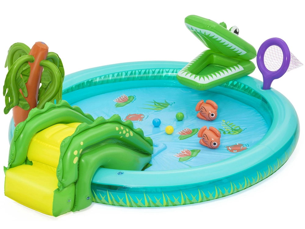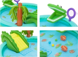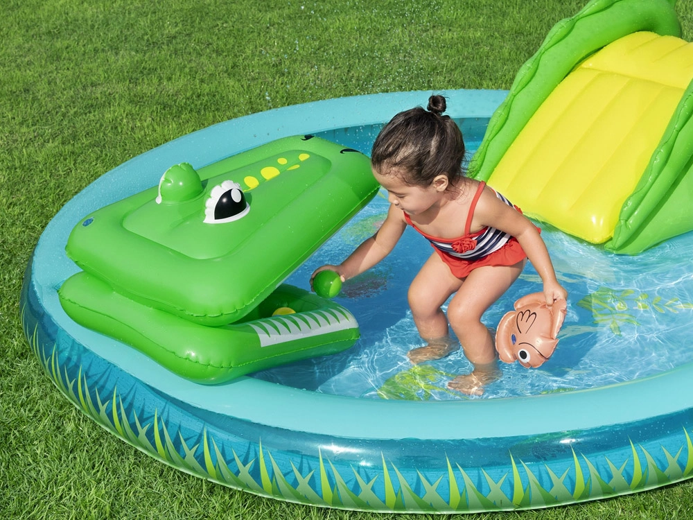 Το φουσκωτό υδάτινο πάρκο «κροκόδειλος» φέρνει στον κήπο σας τροπική ατμόσφαιρα και πολλές δραστηριότητες που θα απασχολήσουν τα παιδιά για ώρες. Η απαλή τσουλήθρα με μαλακό σημείο προσγείωσης είναι φιλική για τους μικρούς εξερευνητές, ενώ ο εκνεφωτής σε σχήμα φοίνικα προσφέρει ευχάριστη δροσιά στις ζεστές μέρες. Το ανθεκτικό PVC και οι στρογγυλεμένες άκρες φροντίζουν για την ασφάλεια στο παιχνίδι.