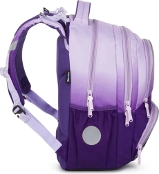 Η σχολική τσάντα Oxy Next στη μοντέρνα απόχρωση ombré μωβ έχει σχεδιαστεί για καθημερινή άνεση και ασφάλεια των μαθητών. Η εργονομικά διαμορφωμένη πλάτη, οι ενισχυμένοι ιμάντες ώμου και ο ρυθμιζόμενος ιμάντας στήθους κατανέμουν το βάρος και συμβάλλουν στη σωστή στάση του σώματος. Χάρη στη σαφή διαρρύθμιση και στις δύο ευρύχωρες πλαϊνές τσέπες, τα παιδιά έχουν τα πάντα πρόχειρα.