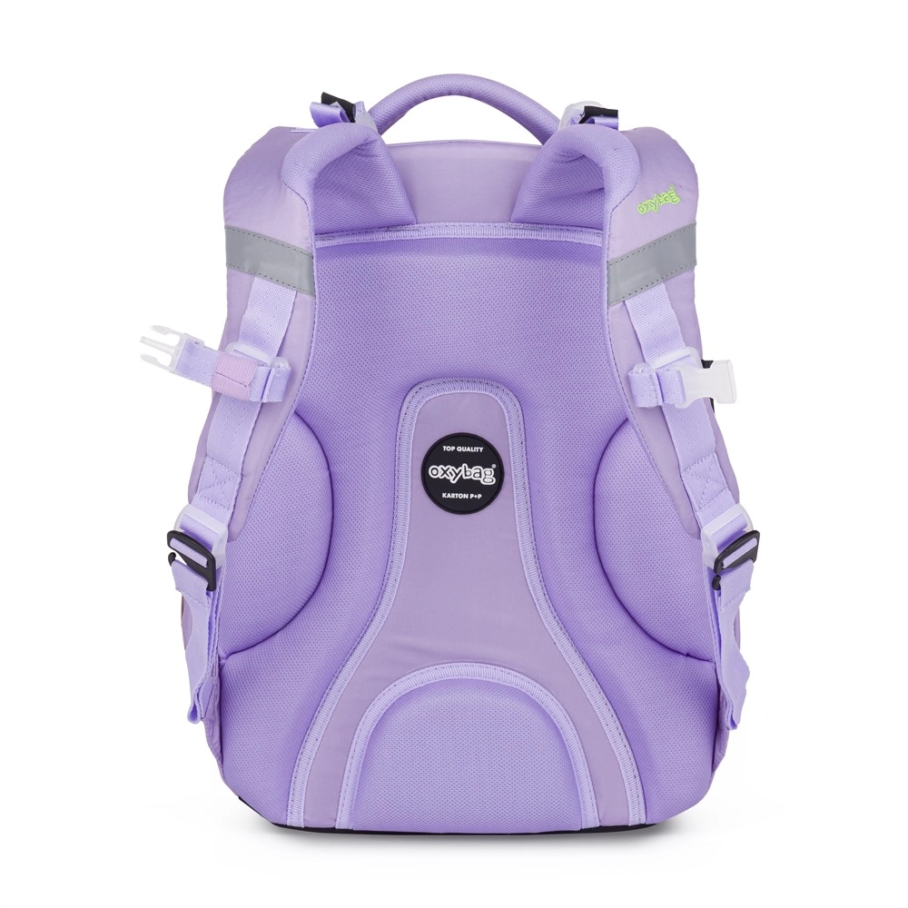 Η OXY NEXT Shiny έχει σχεδιαστεί για την άνεση και την ασφάλεια μαθητών με ύψος από 128 cm. Το πίσω πάνελ μήκους 42 cm και η εργονομική διαμόρφωση κατανέμουν ομοιόμορφα το βάρος, ενώ οι ενισχυμένοι ιμάντες ώμου και ο ιμάντας στήθους κρατούν την τσάντα σταθερή στην πλάτη. Με όγκο 21 l και έξυπνη οργάνωση, χωράει τα πάντα, από βιβλία μέχρι κολατσιό.