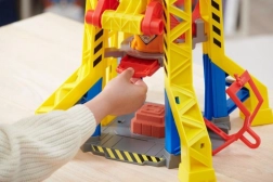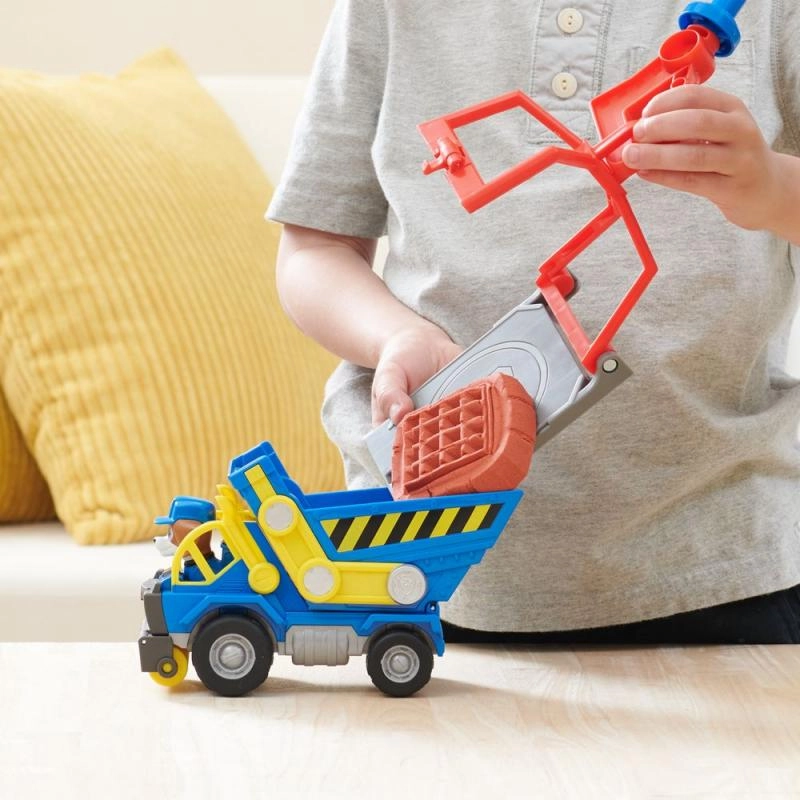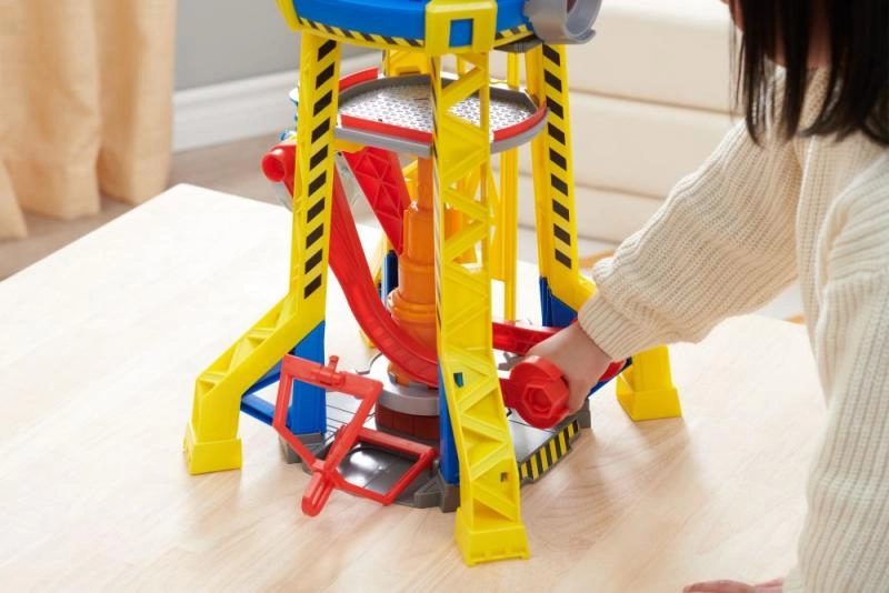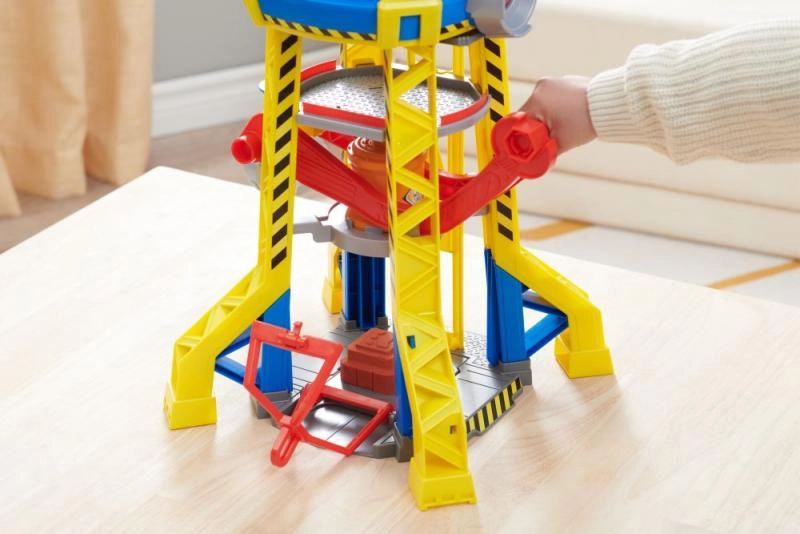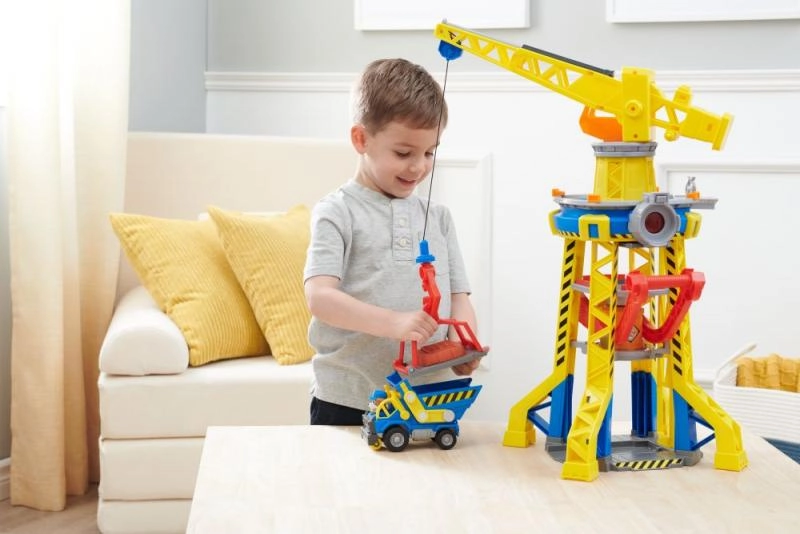 Το σετ Rubble & Crew: Πύργος Γερανού περιλαμβάνει ρεαλιστικά σχεδιασμένο πύργο γερανού, ίδιο με της σειράς, με ενσωματωμένα εργαλεία κατασκευής κατάλληλα για παιδιά. Αυτός ο πύργος διαθέτει σύστημα μορφοποίησης κινητικής άμμου, που επιτρέπει την κατασκευή δικών σας δομικών μπλοκ. Απλώς χρησιμοποιήστε τον μεγάλο κόκκινο μοχλό για να ενεργοποιήσετε την πρέσα και να φτιάξετε τα δικά σας δομικά τουβλάκια.