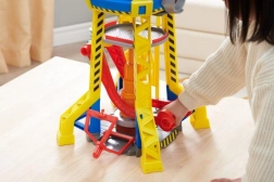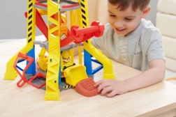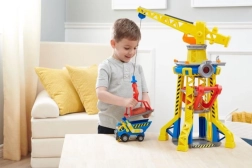 Βάλτε τον Rubble στο ασανσέρ και ανεβάστε τον στην κορυφή του πύργου, στην καμπίνα χειρισμού του γερανού. Χρησιμοποιήστε τον γερανό για να ανυψώσετε τα μπλοκ και να τα μετακινήσετε στη σωστή θέση. Για περισσότερες εκπλήξεις, πατήστε το μεγάλο κόκκινο κουμπί στον πύργο για να ενεργοποιήσετε τα φώτα και να ακούσετε γνώριμους ήχους από τη σειρά. Για επιπλέον διασκέδαση, αναζητήστε περισσότερα κατασκευαστικά φορτηγά και φιγούρες από τη σειρά Rubble & Crew.