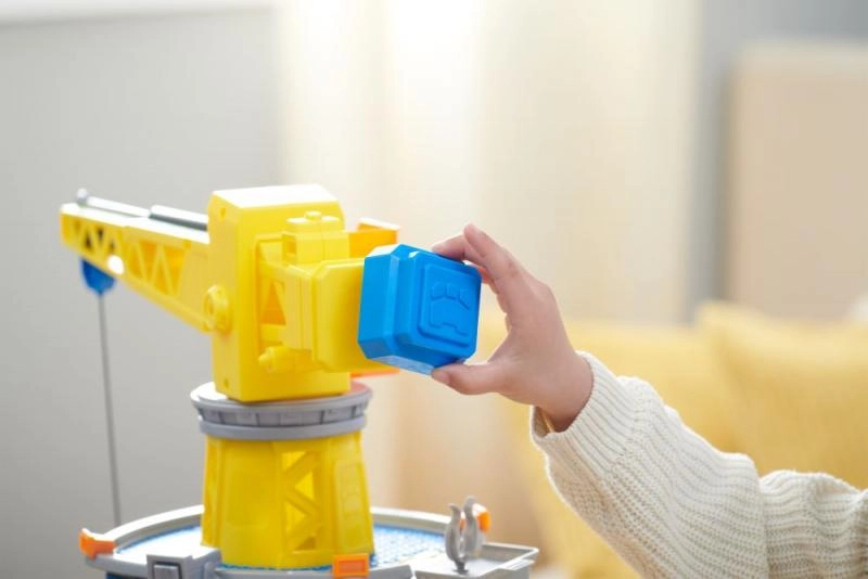 Ρεαλιστικός περιστρεφόμενος γερανός με πρόσθετη δαγκάνα για την ανύψωση και την καταβίβαση αντικειμένων, που ενθουσιάζει τα παιδιά με διαδραστικό *παιχνίδι*.