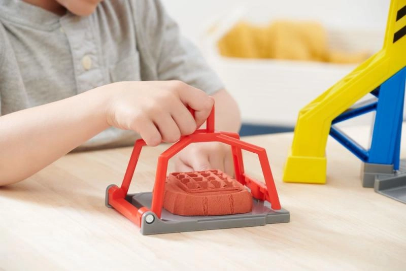 Επιτρέπει στα παιδιά να δημιουργούν τα δικά τους δομικά μπλοκ με κινητική άμμο. Με τον πρέσα που ενεργοποιείται από τον κόκκινο μοχλό, τα παιδιά μπορούν να δημιουργούν και στη συνέχεια να επεξεργάζονται τις δικές τους κατασκευές.