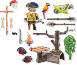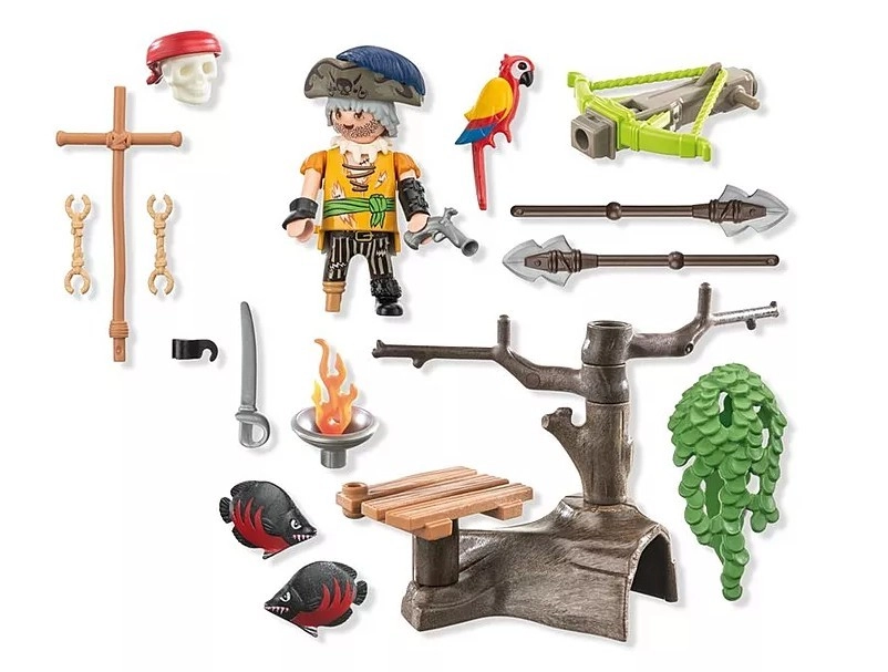 Εξερευνήστε χαμένους θησαυρούς με το σετ παιχνιδιού Playmobil Πειρατής με βαλλίστρα. Η σχεδία είναι εξοπλισμένη με περιστρεφόμενα κανόνια που παρέχουν προστασία κατά τον πλου στην ανοιχτή θάλασσα. Τα προσεκτικά τοποθετημένα αξεσουάρ βρίσκονται σε βαρέλι, ώστε όλα να είναι έτοιμα για αιφνίδιες απειλές.