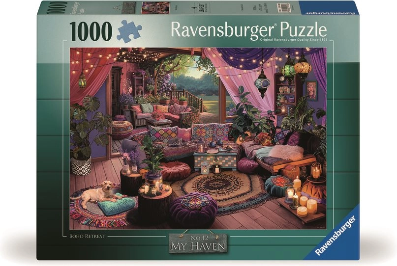 Ravensburger Παζλ Το άνετο boho καταφύγιό μου με 1000 κομμάτια εγγυάται ώρες διασκέδασης για όλους τους λάτρεις των παζλ. Ιδανικό για χαλάρωση και απόδραση στον δικό σας άνετο boho χώρο.