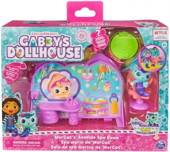Εξερευνήστε νέες δυνατότητες παιχνιδιού με το Παραθαλάσσιο δωμάτιο σπα της Θαλασσογατούλας από το Μαγικό Σπιτάκι της Γκάμπι. Αυτό το σετ περιλαμβάνει μια όμορφη φιγούρα της Θαλασσογατούλας ύψους σχεδόν 5 cm και την αγαπημένη της μπανιέρα με φυσαλίδες. Μετά το μπάνιο, η Θαλασσογατούλα μπορεί να χαλαρώσει στην περιστρεφόμενη καρέκλα σπα.