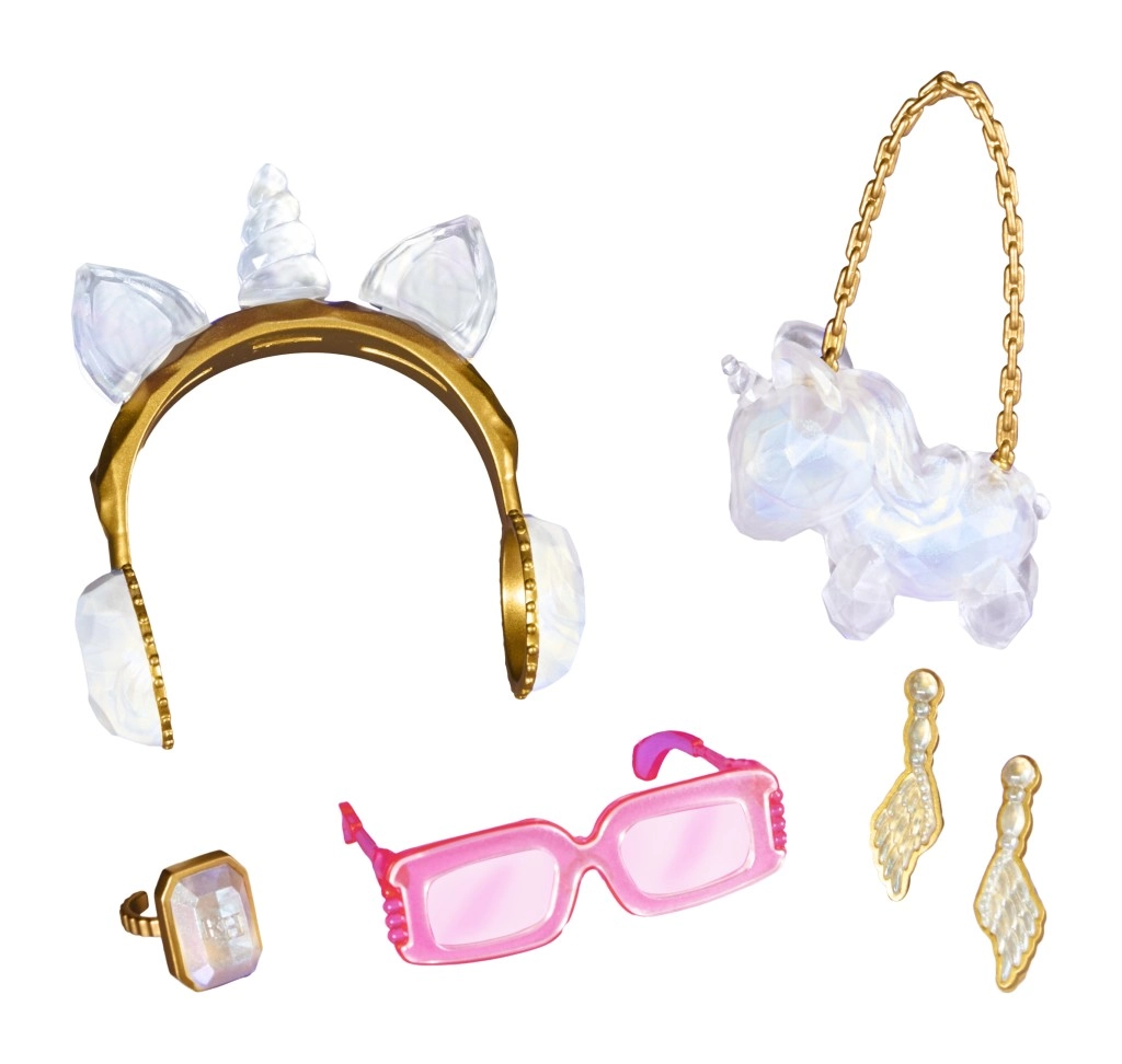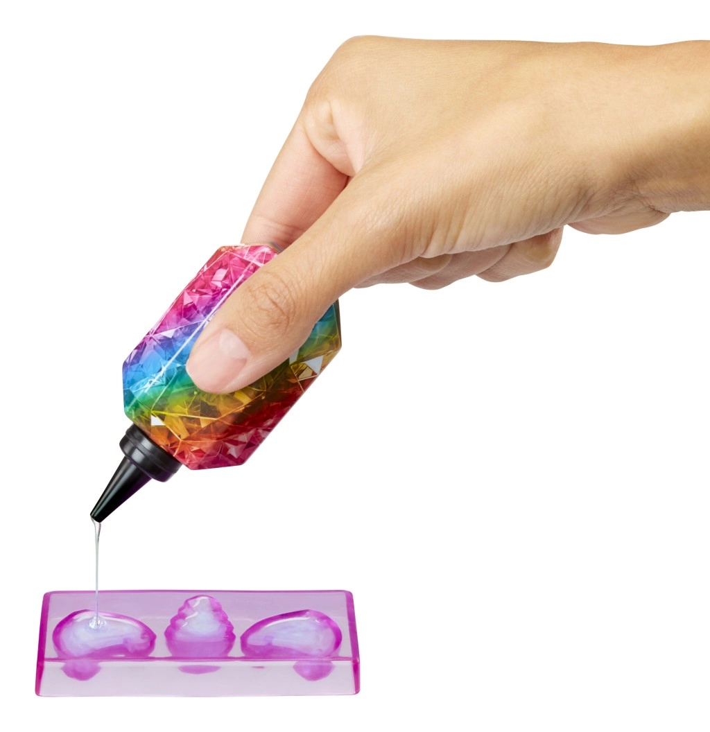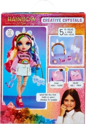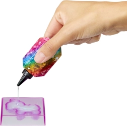 Η Amaya Raine από τη συλλογή Rainbow High Creative Crystals συνδυάζει δημιουργικό εργαστήριο με τον κόσμο της μόδας. Με διαφανή ρητίνη και επαναχρησιμοποιούμενα καλούπια, χύνεις εύκολα μοναδικά μενταγιόν, γυαλιά και άλλα διακοσμητικά, με τα οποία ολοκληρώνεις το outfit της κούκλας – και το προσωπικό σου στυλ. Κάθε δημιουργία είναι μοναδική και δίνει λάμψη στο παιχνίδι.