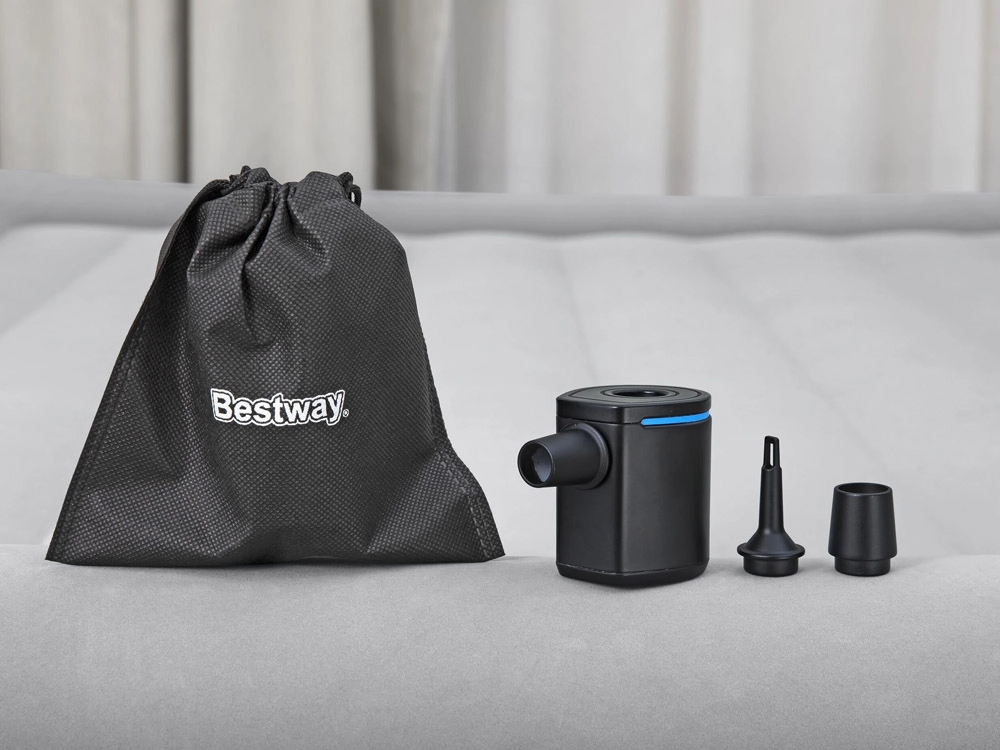 Συμπαγής και ελαφριά ηλεκτρική αντλία USB BESTWAY POWERTOUCH POCKET για γρήγορο φούσκωμα και ξεφούσκωμα στρωμάτων, στρωμάτων camping ή φουσκωτών παιχνιδιών πισίνας. Χάρη στη ροή 90 l/min, τον εύκολο χειρισμό με ένα κουμπί και την υπερελαφριά κατασκευή (68 g), είναι ιδανική για ταξίδια και κάμπινγκ. Στη συσκευασία θα βρείτε 3 καθολικά ακροφύσια και καλώδιο USB.