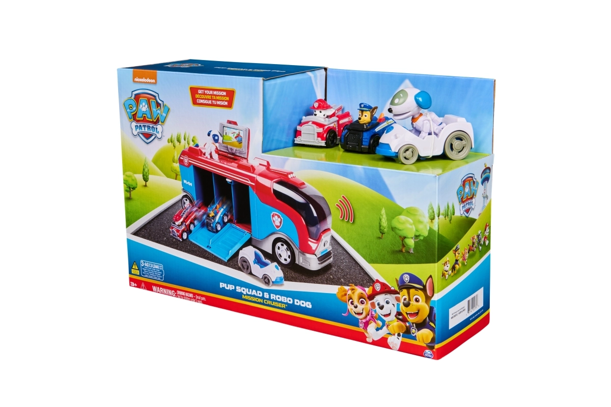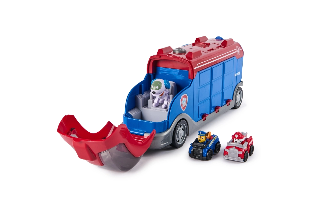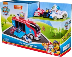 Το σετ περιλαμβάνει δύο μίνι αγωνιστικά των ηρώων Chase και Marshall και τη φιγούρα του Ρόμπο-σκύλου με το μικρό του όχημα. Ο μεταφορέας διαθέτει ροδάκια κύλισης, αναδιπλούμενη ράμπα και έξυπνα σχεδιασμένο αποθηκευτικό χώρο για εύκολη ανάπτυξη της ομάδας.
