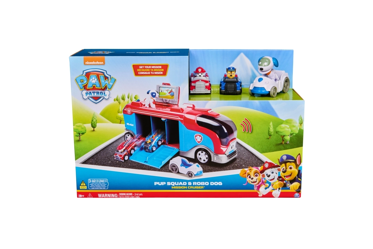 Το Mission Cruiser είναι ένα κινητό αρχηγείο που βυθίζει αμέσως τα παιδιά στον κόσμο της Paw Patrol. Τα ανοιγόμενα πλαϊνά πάνελ αποκαλύπτουν θέσεις στάθμευσης για μίνι οχήματα και το διαδραστικό μόνιτορ με κάρτα αποστολής βοηθά στον προγραμματισμό της επόμενης δράσης. Με ήχους κατευθείαν από τη σειρά, κάθε αποστολή γίνεται ακόμη πιο συναρπαστική.