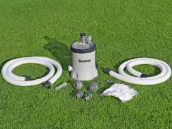 Η συσκευή είναι κατάλληλη για ευρύ φάσμα υπέργειων πισινών και χάρη στην παροχή 5678 l/h (αντλία) και 3974 l/h (σύστημα) διατηρεί το νερό σταθερά καθαρό και σε κυκλοφορία. Στη συσκευασία περιλαμβάνονται σωλήνες, αντάπτορας για διάφορες βαλβίδες και δοσομετρητής CHEMCONNECT για εύκολη διατήρηση της χημικής ισορροπίας του νερού.