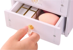 Η κομψή μίνι τουαλέτα είναι ιδανική για μικρούς και μεγάλους χώρους. Χάρη στον περιστρεφόμενο καθρέφτη 360° ρυθμίζετε εύκολα την ιδανική γωνία για ακριβές μακιγιάζ και περιποίηση. Οι συμπαγείς διαστάσεις εξοικονομούν χώρο, ενώ το πρακτικό συρτάρι κρατά καλλυντικά, κοσμήματα και μικροαντικείμενα τακτοποιημένα και άμεσα προσβάσιμα.