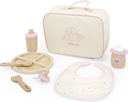 Το σετ περιλαμβάνει ό,τι χρειάζονται οι μικροί φροντιστές: πιατάκι, κουταλάκι, πιρουνάκι, πιπίλα, δύο μπιμπερό και μια απαλή σαλιάρα. Χάρη στην ασφαλή κατασκευή του είναι κατάλληλο για παιδιά από 3 ετών και γίνεται αγαπημένο αξεσουάρ για την παιδική κουζίνα και τη γωνιά με τις κούκλες.