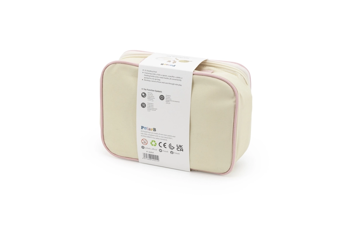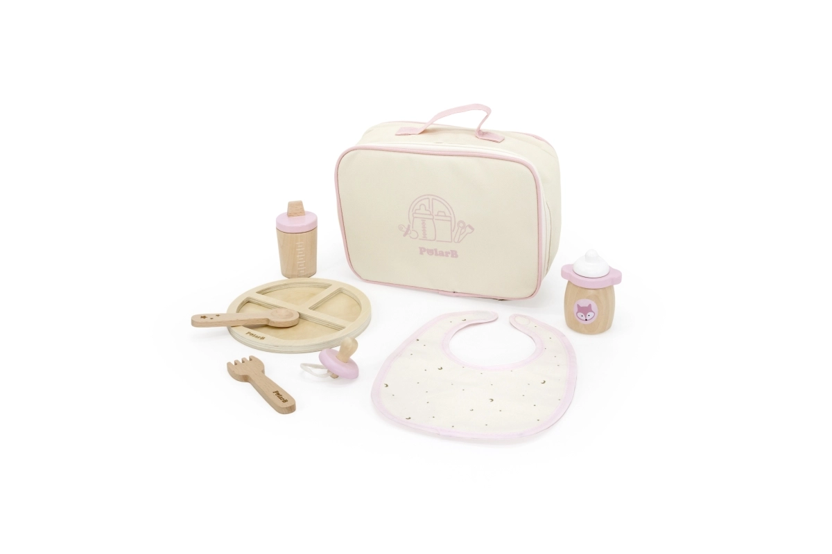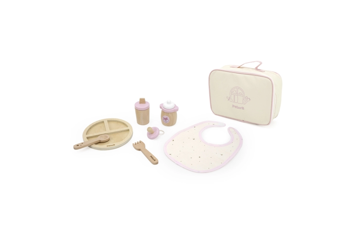 Το παιδικό σετ ταΐσματος κούκλας POLARB συνδυάζει ποιοτικά ξύλινα στοιχεία με απαλά υφάσματα σε τρυφερό σχεδιασμό. Όλα αποθηκεύονται τακτικά σε συμπαγές τσαντάκι με φερμουάρ, ιδανικό για το σπίτι και τις εξορμήσεις. Το παιχνίδι φροντίδας κούκλας αναπτύσσει φυσικά ενσυναίσθηση, υπευθυνότητα και λεπτή κινητικότητα.