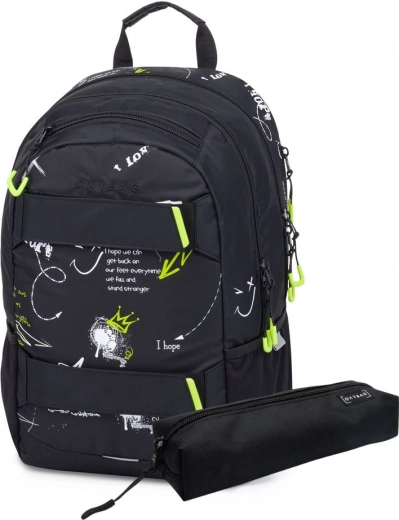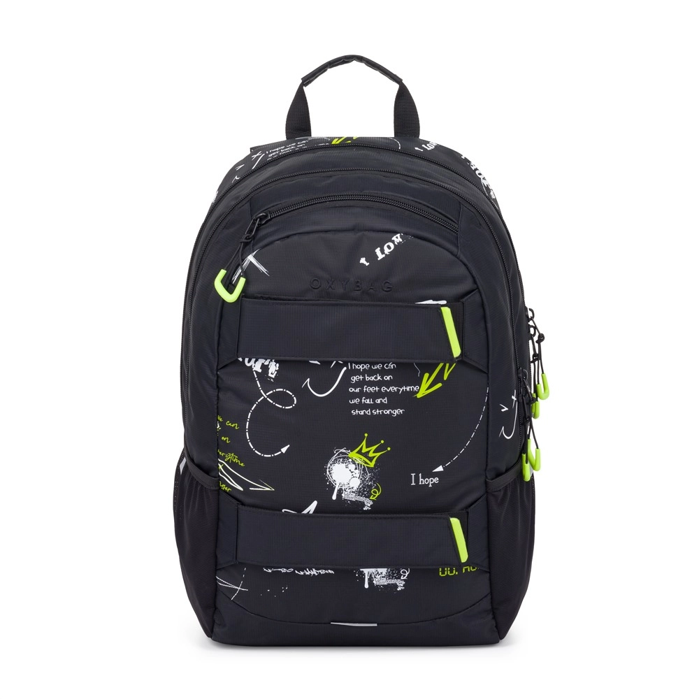 Το σακίδιο OXY Sport Graffiti είναι εξαιρετική επιλογή για μαθητές και ενήλικες. Εργονομικά διαμορφωμένη πλάτη και ρυθμιζόμενοι επενδεδυμένοι ιμάντες εξασφαλίζουν άνετη μεταφορά όλη την ημέρα. Ο πρακτικός ιμάντας στήθους συμβάλλει στη σταθερότητα. Δύο κύριες θήκες και μια μικρή μπροστινή τσεπούλα με ανθεκτικά φερμουάρ παρέχουν άφθονο χώρο για βιβλία και προσωπικά αντικείμενα.