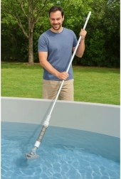 Κρατήστε το νερό κρυστάλλινα καθαρό χωρίς κόπο. Το ασύρματο σκουπάκι BESTWAY έχει σχεδιαστεί για μικρές υπέργειες πισίνες και υδρομασάζ, όπου απορροφά αξιόπιστα άμμο, φύλλα και κατακάθια. Με τον ελαφρύ τηλεσκοπικό κοντάρι φτάνετε άνετα σε όλες τις γωνίες και τα σχήματα της πισίνας.