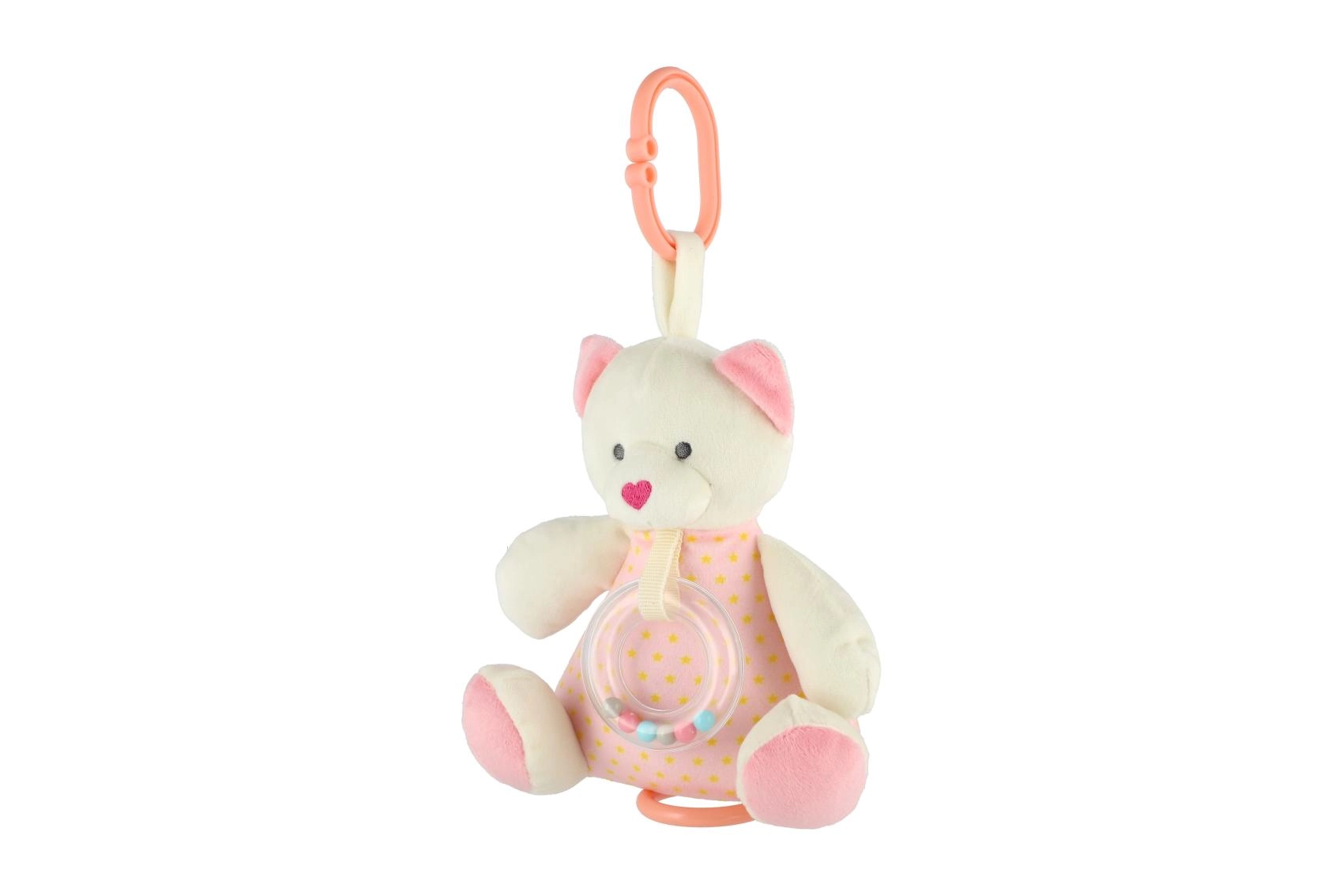 Χαριτωμένο λούτρινο αρκουδάκι με μουσική μεγέθους 18 cm σε απαλό ροζ χρώμα προσφέρει καταπραϋντικό ήχο, υπέροχα μαλακά υλικά και ασφαλή κατασκευή χωρίς κοφτερές άκρες. Ιδανικός σύντροφος για κούνια και καρότσι, που βοηθά τα παιδιά να κοιμούνται πιο εύκολα και να αναπτύσσουν την αντίληψη χάρη στις απαλές υφές και το διακριτικό κουδουνάκι.
