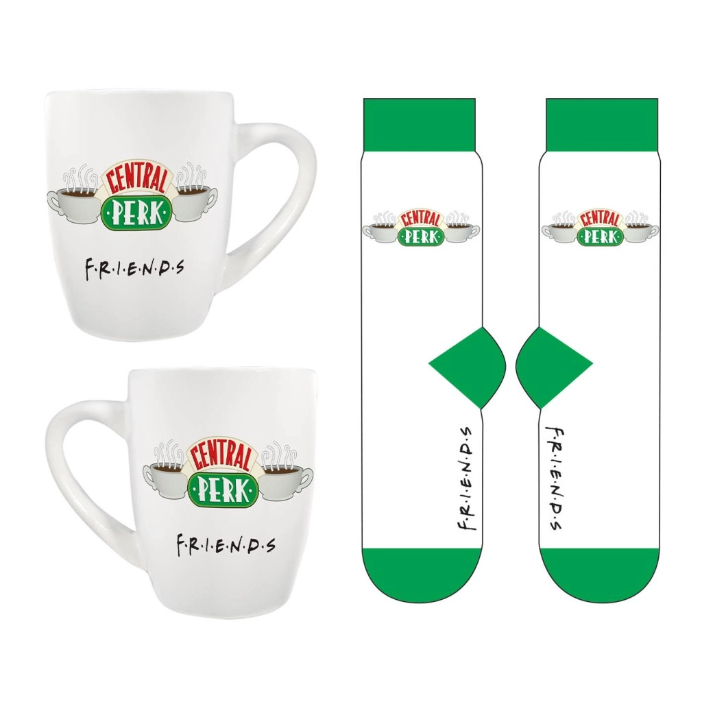 Στυλάτο σετ δώρου για τις λάτρεις της σειράς Friends: περιλαμβάνει κεραμική κούπα 315 ml και άνετες κάλτσες σε μέγεθος 36–41. Η κούπα είναι κατάλληλη για πλυντήριο πιάτων και φούρνο μικροκυμάτων, οι κάλτσες είναι από μαλακό υλικό για καθημερινή άνεση.