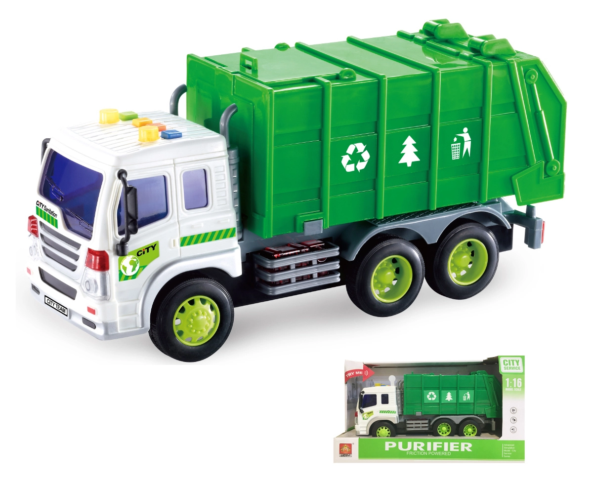 Σας παρουσιάζουμε ένα παιχνίδι που θα ενθουσιάσει κάθε μικρό οδηγό - απορριμματοφόρο με εφέ. Αυτό το όχημα μήκους 28 cm είναι εξοπλισμένο με μηχανισμό αδράνειας, που συμβάλλει σε πιο παρατεταμένο και ρεαλιστικό παιχνίδι.