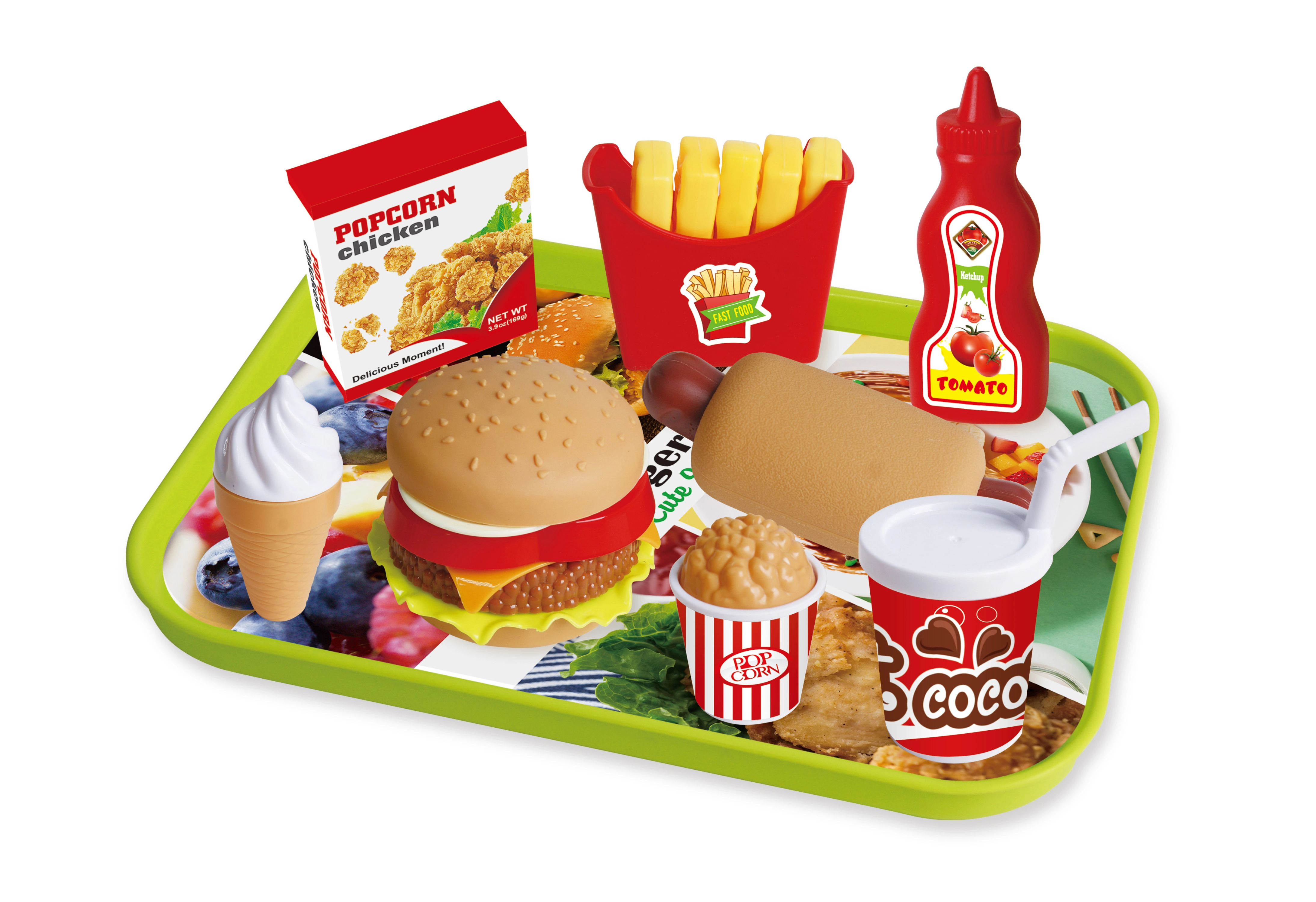 Αυτό το παιχνίδι είναι ιδανικό για μικρά παιδιά που αγαπούν να φαντάζονται ότι σερβίρουν αγαπημένα fast-food εδέσματα. Το σετ περιλαμβάνει μια σειρά από νόστιμα κομμάτια φαγητού που μοιάζουν αληθινά: