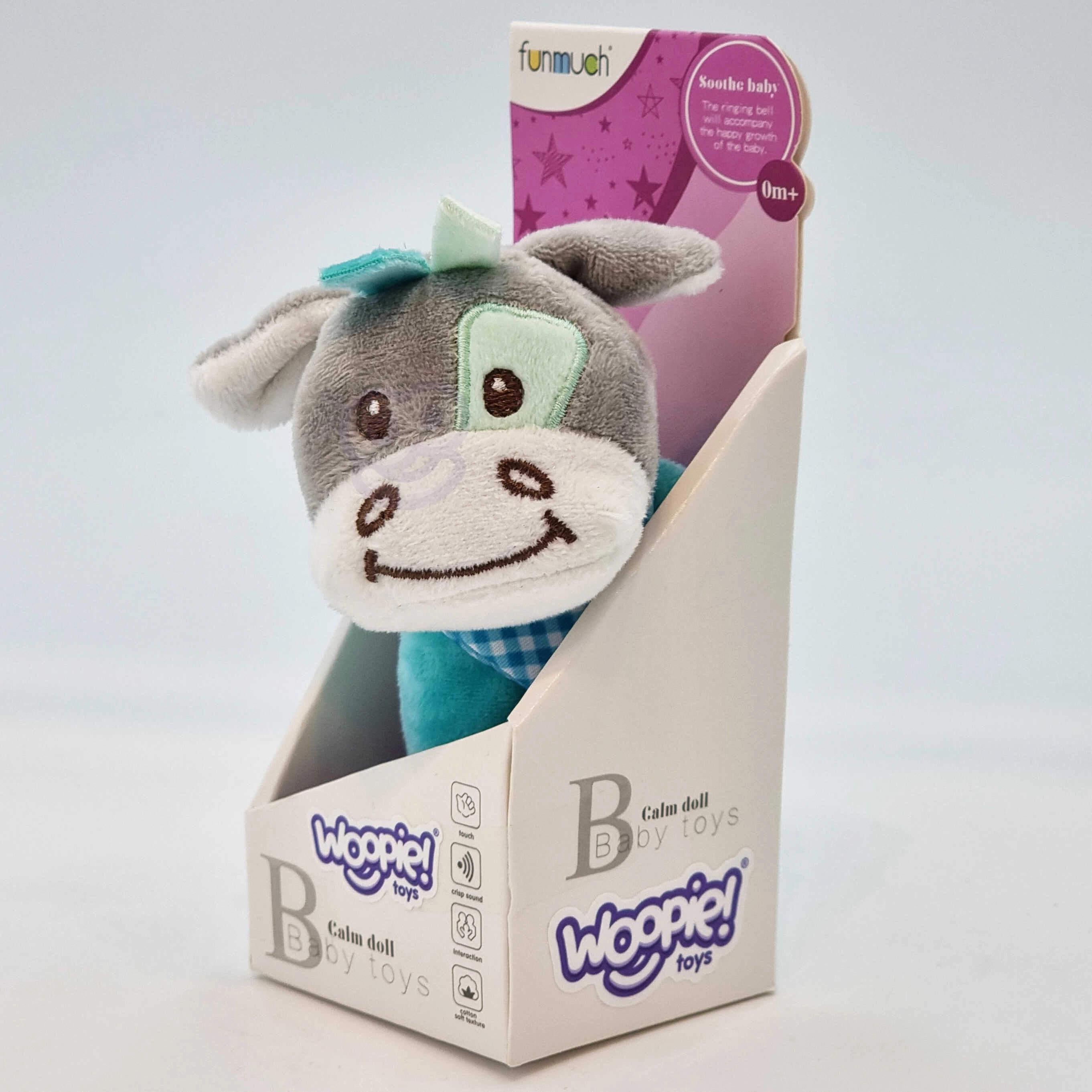 Το λούτρινο γαϊδουράκι Woopie είναι ειδικά σχεδιασμένο για τα μικρά χεράκια του παιδιού σας. Βοηθά στην ανάπτυξη της λεπτής κινητικότητας, της αίσθησης αφής, της ακοής και της όρασης. Παράγει χαρακτηριστικούς ήχους σφυρίχτρας και περιλαμβάνει στοιχείο τσαλακώματος που αφυπνίζει την αισθητηριακή αντίληψη. Χάρη στο μαλακό υλικό, γίνεται πιστός σύντροφος ακόμη και στον ύπνο.