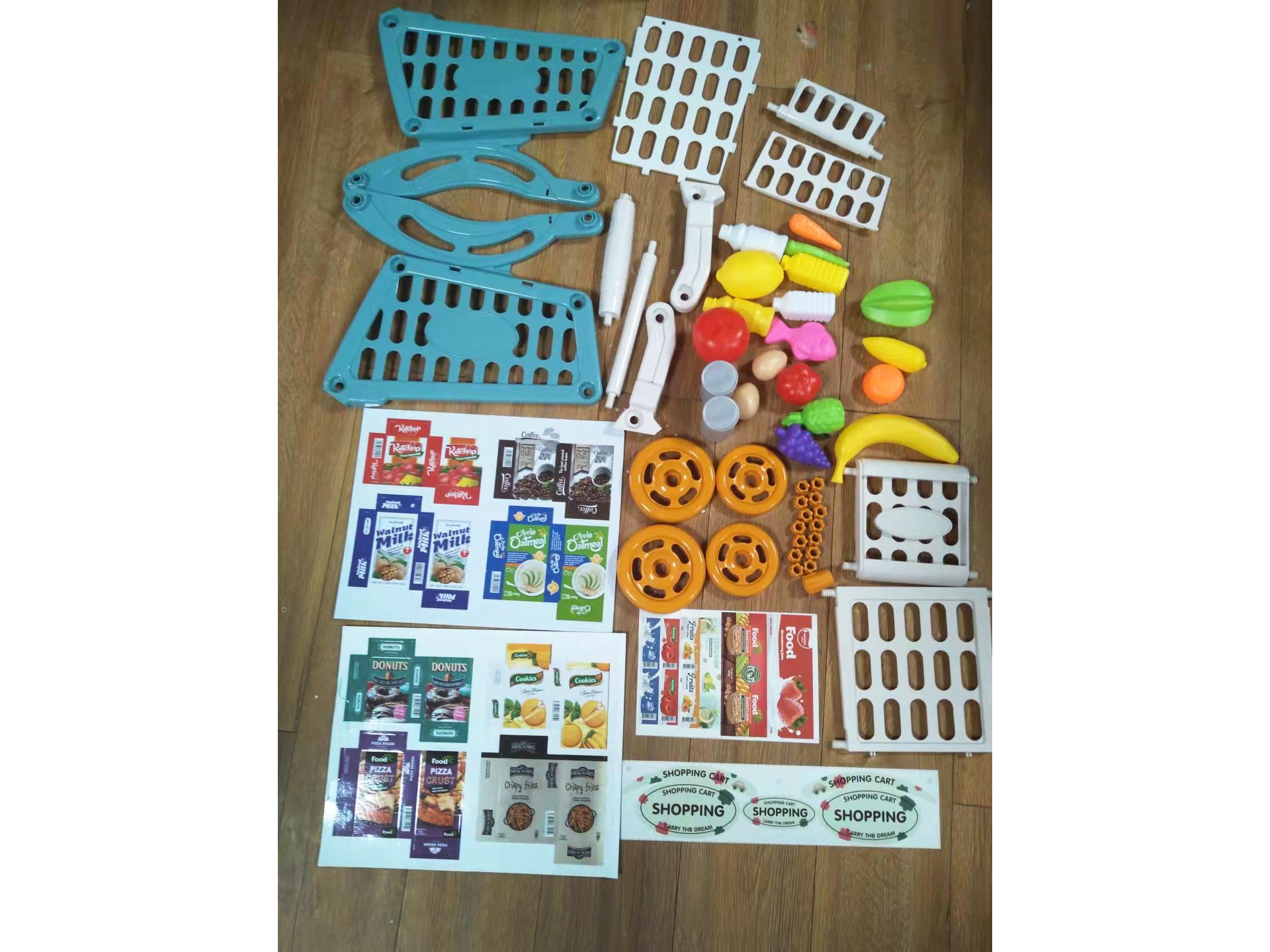 Το παιδικό καρότσι αγορών με πλούσια αξεσουάρ θα χαροποιήσει όλους τους μικρούς εμπόρους. Περιλαμβάνει 56 τεμάχια τροφίμων και εικονικές οδηγίες για εύκολη συναρμολόγηση. Η σταθερή κατασκευή και οι διαστάσεις 40 × 24,5 × 44 cm είναι ιδανικές για παιδικό παιχνίδι στο σπίτι και στις βόλτες.
