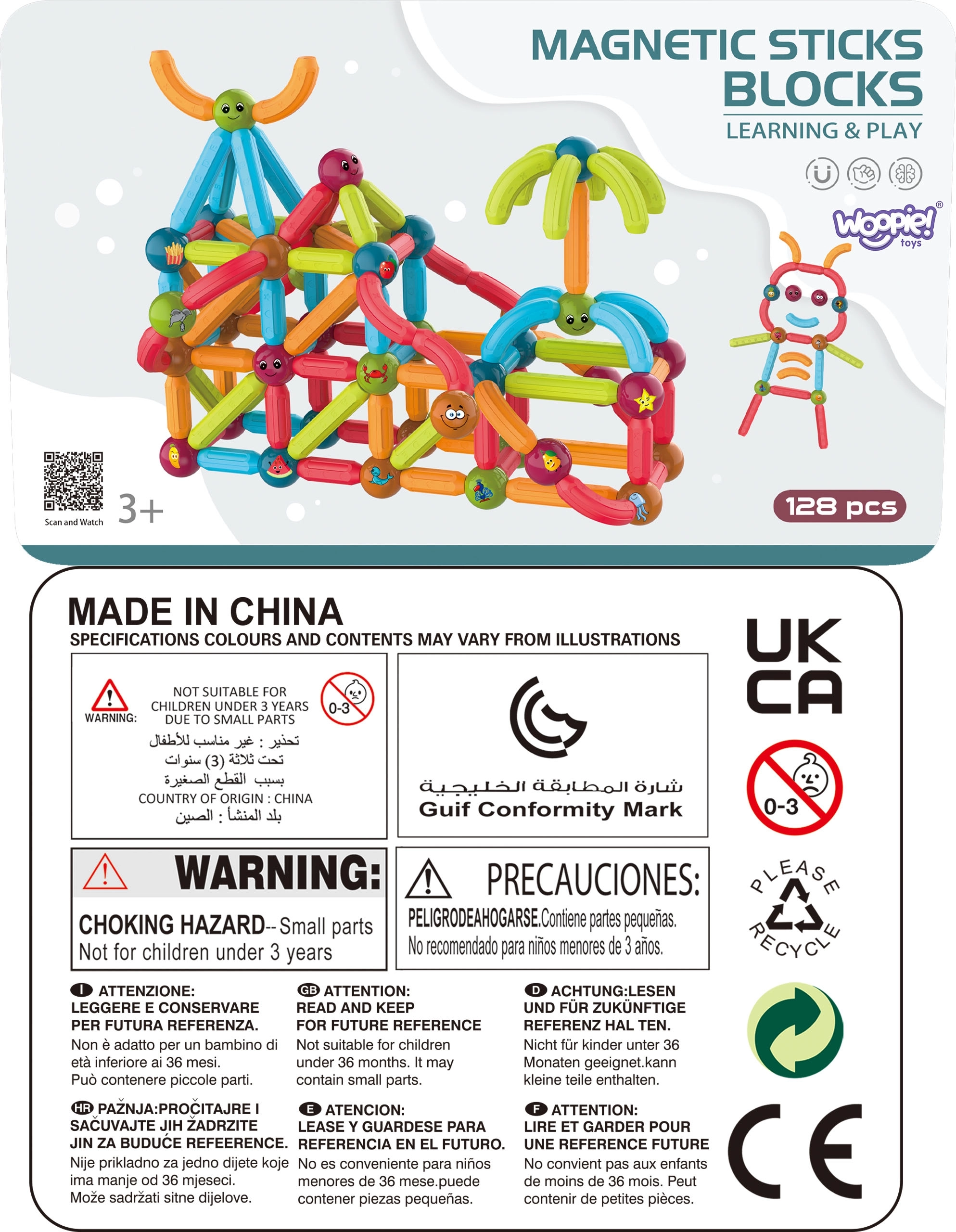 Ανακαλύψτε τον δημιουργικό κόσμο με το μαγνητικό σετ κατασκευών WOOPIE με 128 κομμάτια, που συνδυάζει διασκέδαση και μάθηση. Χάρη στα μεγάλα, ισχυρά και ασφαλή κομμάτια τα παιδιά μπορούν εύκολα να φτιάξουν 3D κατασκευές, γεωμετρικά σχήματα και μικρό σπιτάκι. Το σετ ενισχύει τη λεπτή κινητικότητα, τη χωρική αντίληψη, τη δημιουργικότητα και τη συγκέντρωση, ενώ παράλληλα διδάσκει αλφάβητο, μέτρηση και σχήματα. Περιλαμβάνονται επίσης κάρτα με πρότυπα και πρακτικό φορητό κουτί.