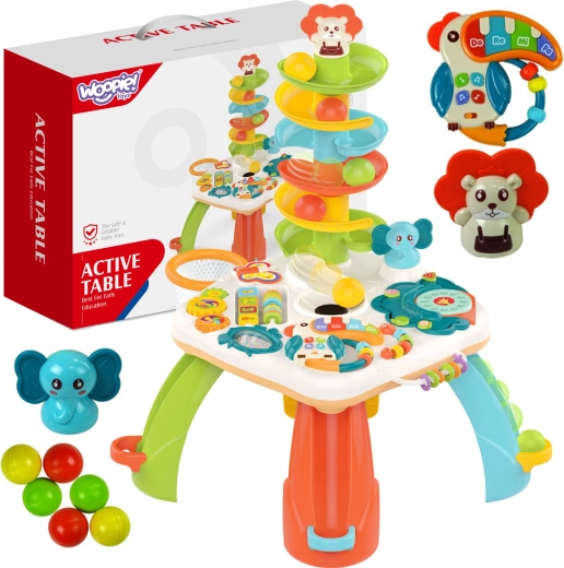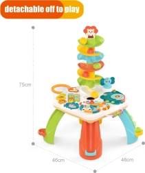 Το διαδραστικό τραπεζάκι για παιδιά συνδυάζει έναν εκπαιδευτικό πίνακα με αισθητηριακά στοιχεία και τσουλήθρα για μπαλάκια. Η πολύχρωμη και διασκεδαστική εμφάνιση προσελκύει τόσο αγόρια όσο και κορίτσια. Ο παιδικός σχεδιασμός του τραπεζιού ενώνει το παιχνίδι με τη μάθηση, βοηθώντας στην ανάπτυξη κινητικών και χειρωνακτικών δεξιοτήτων, στην ακρόαση και στην κατανόηση του κόσμου. Είναι το ιδανικό παιχνίδι για να διεγείρει την ανάπτυξη του παιδιού.