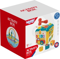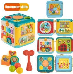 Κάθε πλευρά προσφέρει διαφορετική διασκέδαση – πιάνο, χτύπημα μπαλών, ταξινομητή, λαβύρινθο, περαστήρι και ρολόι με κουδουνίστρα. Ιδανικό για ποικίλο παιχνίδι και μάθηση.