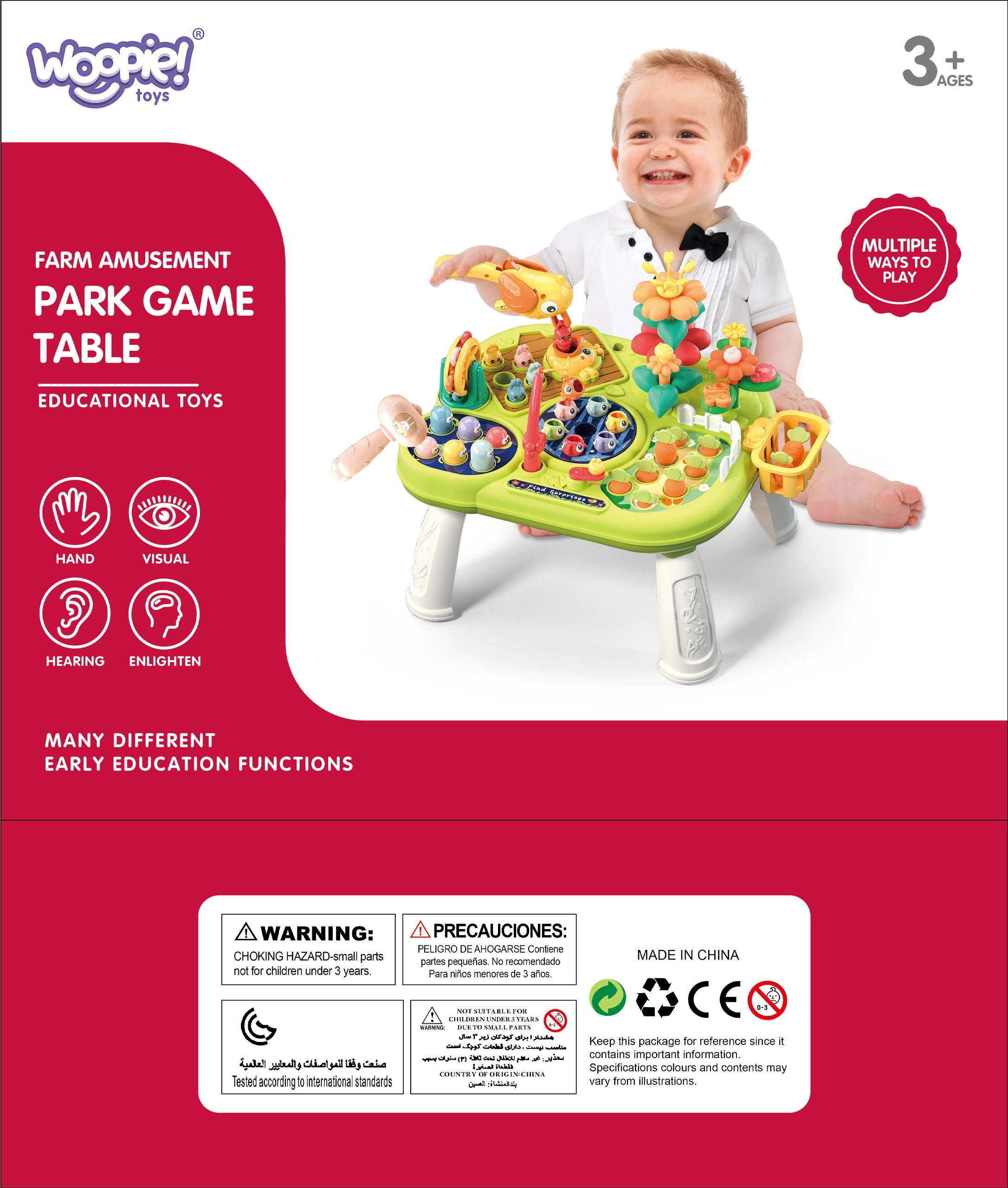 Το διαδραστικό πολυτραπεζάκι WOOPIE προσφέρει στα παιδιά διασκέδαση και ανάπτυξη μαζί. Χάρη στις 8 δραστηριότητες σε 1 προσφέρει ατελείωτες ώρες εξερεύνησης: ψάρεμα ψαριών, χτύπημα σκουληκιών με σφυράκι, κηπουρική με λουλούδια και καροτάκια ή παιχνίδι με το πουλάκι κατά το τράβηγμα του σκουληκιού. Υποστηρίζει τη λεπτή κινητικότητα, την υπομονή, τη συγκέντρωση και τον συντονισμό χεριού–ματιού.