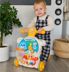 Αυτό το παιχνίδι είναι πραγματικά μια πηγή εκπλήξεων που το παιδί μπορεί να ανακαλύπτει μόνο του. Ο συνδυασμός πολλών λειτουργιών σε ένα παιχνίδι: περπατούρα, πατίνι, όχημα ισορροπίας και εκπαιδευτικό τραπεζάκι εξασφαλίζει ότι δεν θα γίνει ποτέ βαρετό.