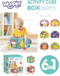 Ένας πολύχρωμος διαδραστικός κύβος WOOPIE προσφέρει 6-σε-1 δραστηριότητες για τους μικρούς: πιανάκι με φώτα, ήχους ζώων, παιχνίδι αντίδρασης, κουμπωτά σχήματα, γρανάζια, λαβύρινθο και περιστρεφόμενο ρολόι. Αναπτύσσει λεπτή κινητικότητα, συντονισμό χεριού–ματιού και αισθητηριακή αντίληψη. Ασφαλής κατασκευή με στρογγυλεμένες άκρες και μη τοξικά χρώματα. Κατάλληλο από 6 μηνών.