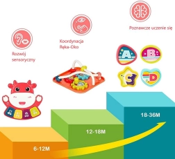 - 6 σε 1 (μουσική, τραγούδια, παιχνίδι αντίδρασης, ήχοι ζώων, κουμπωτά σχήματα, μηχανικά στοιχεία)