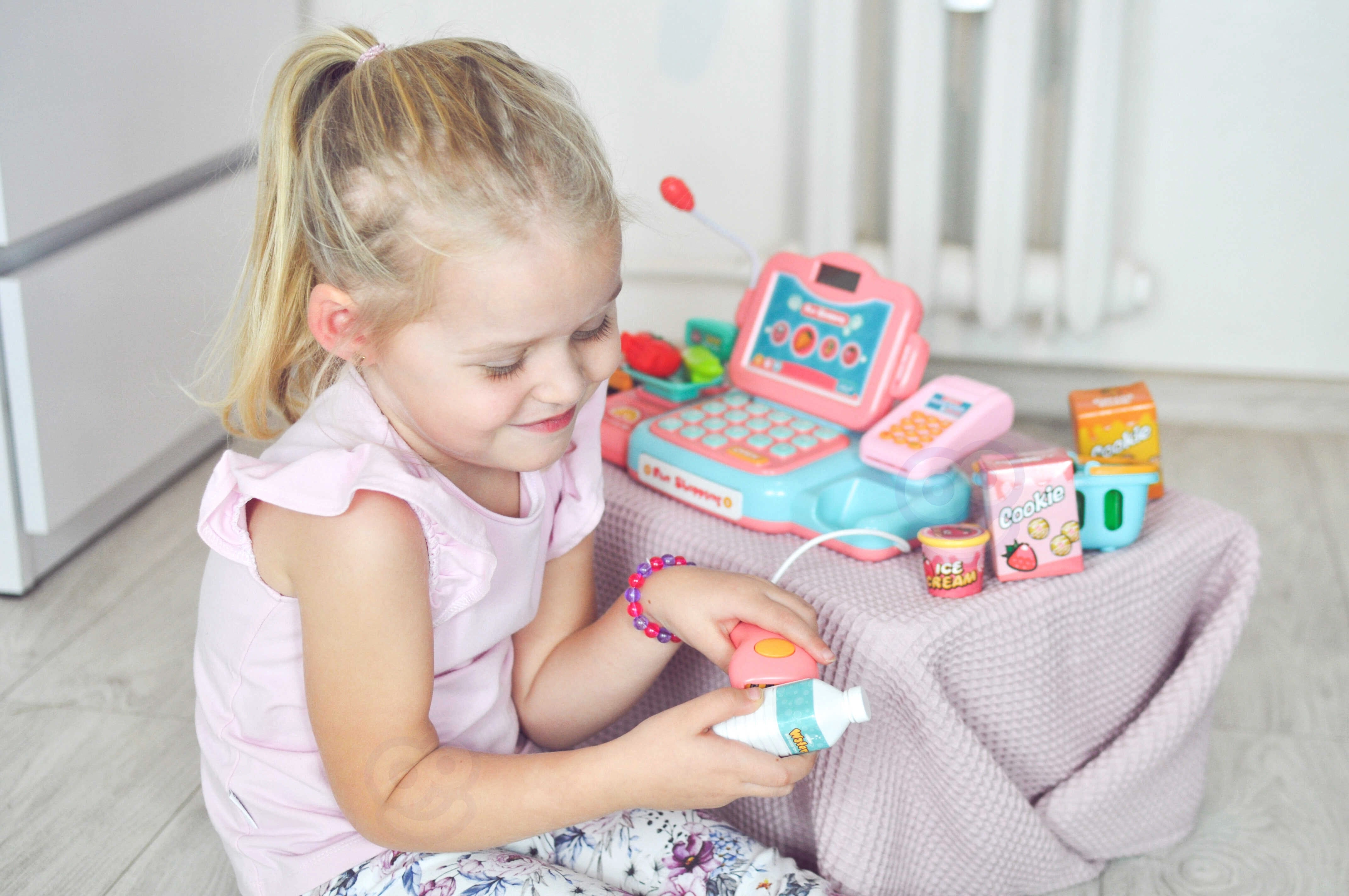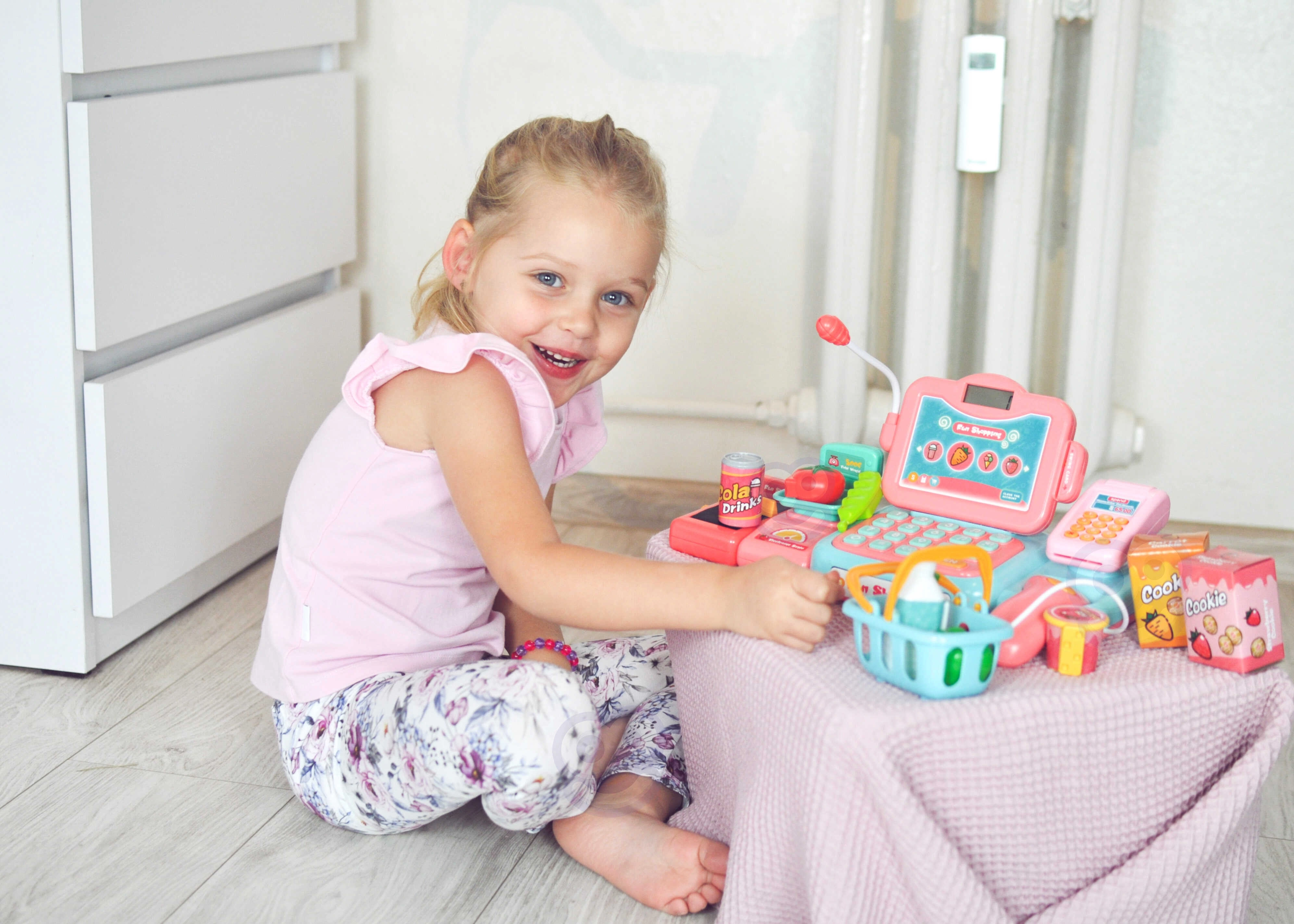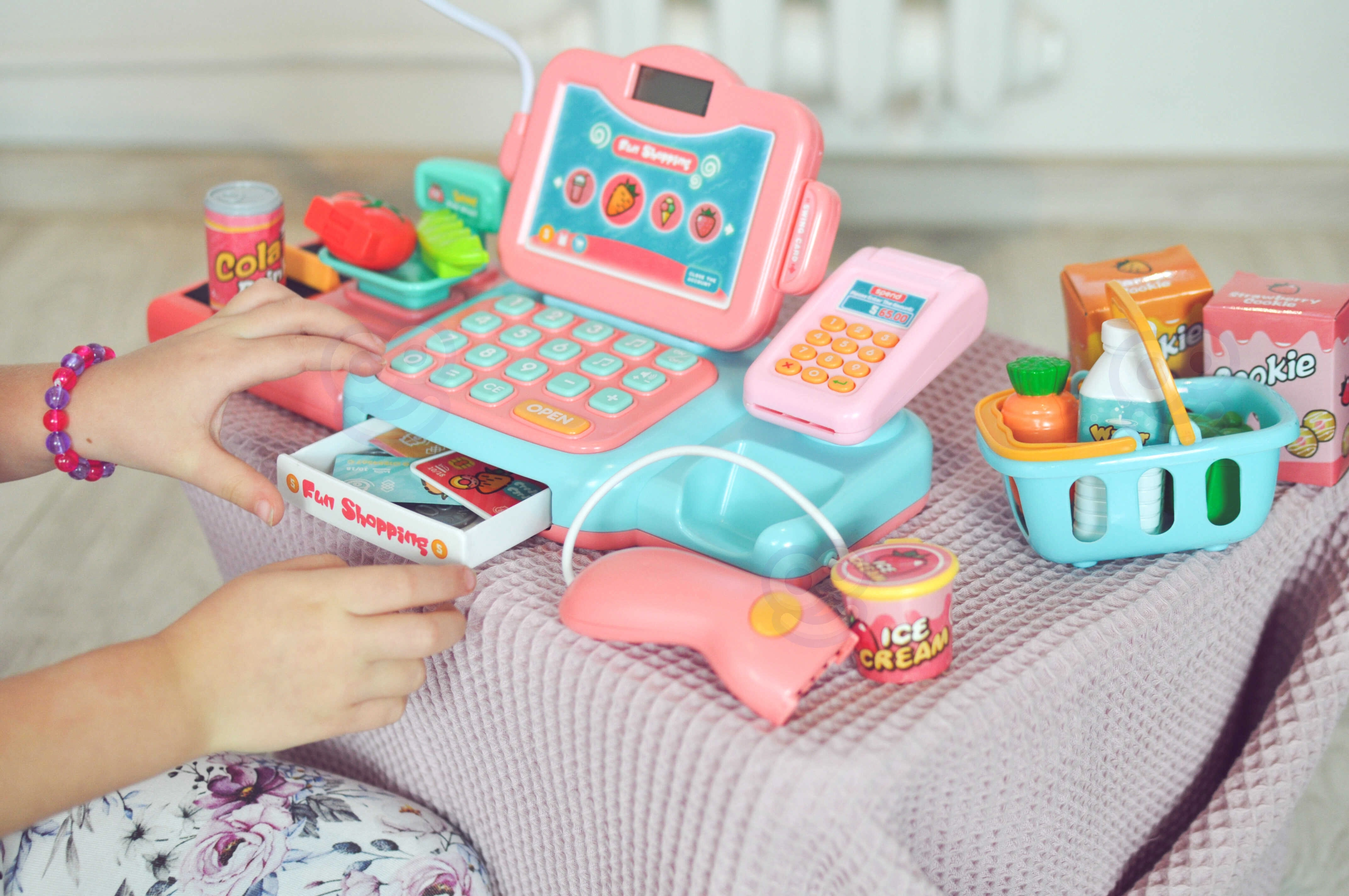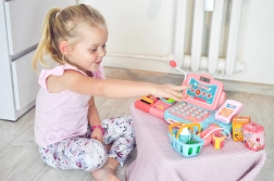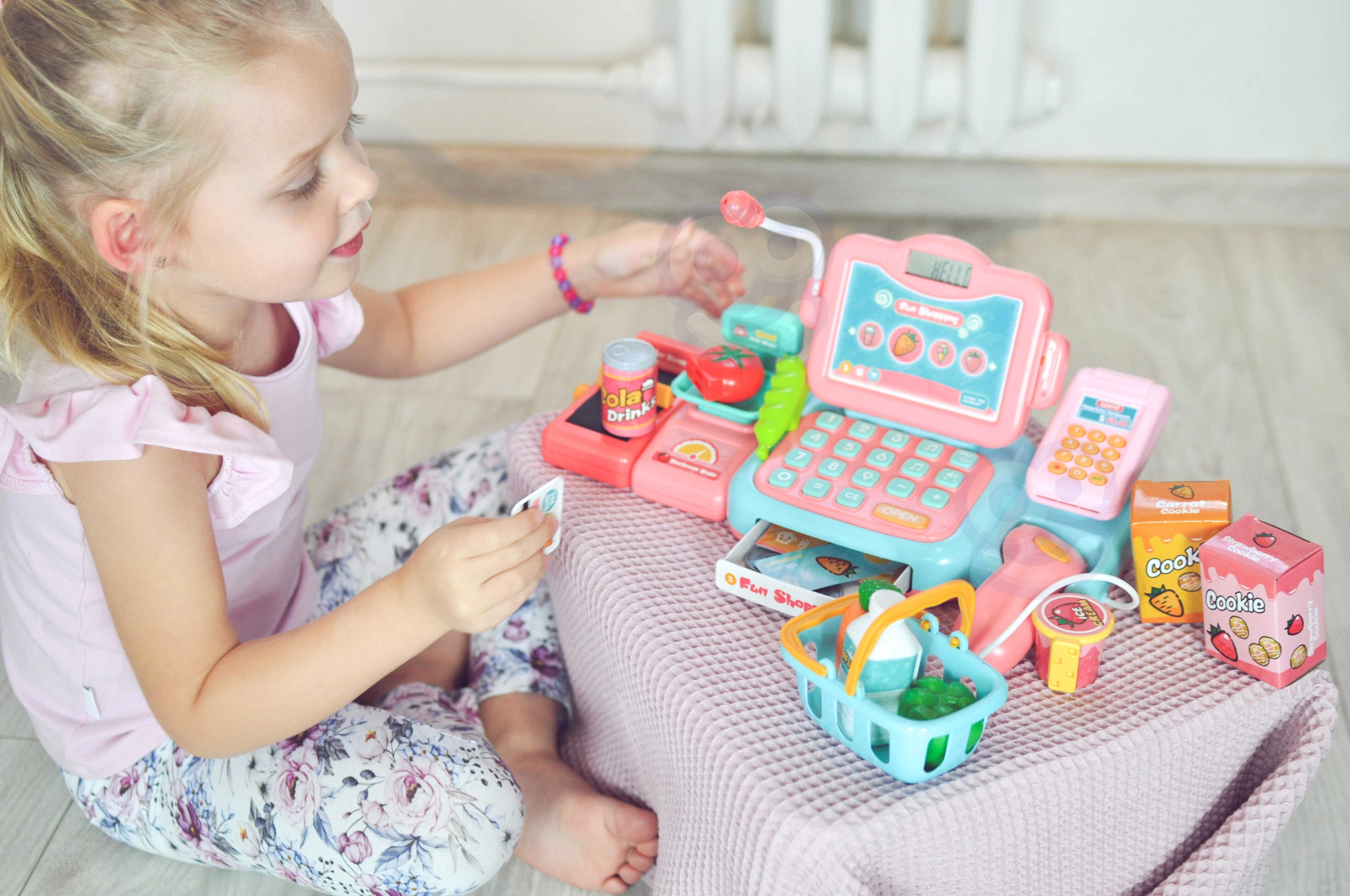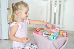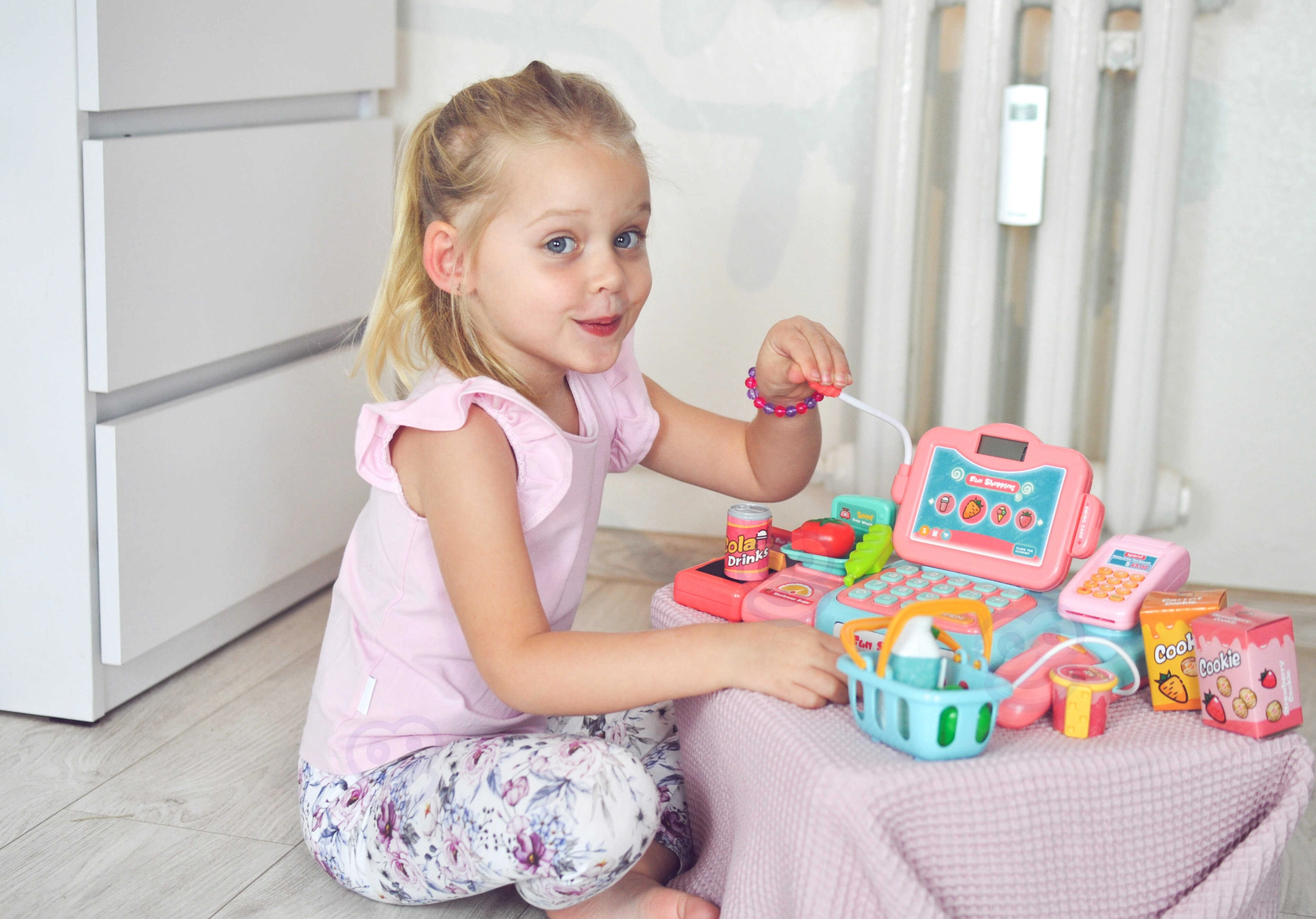 Το παιχνίδι καταστήματος ενισχύει την επικοινωνία, τη συνεργασία και τις βασικές χρηματοοικονομικές δεξιότητες. Τα παιδιά μπορούν να σκανάρουν προϊόντα, να «ζυγίζουν» φρούτα και λαχανικά, να πληκτρολογούν τιμές και να επιλέγουν πληρωμή με μετρητά ή κάρτα. Η ποιοτική και ασφαλής πλαστική κατασκευή εξασφαλίζει μακρά και ασφαλή διασκέδαση.