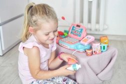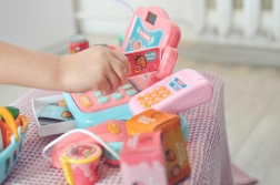 Το παιδικό ταμείο WOOPIE είναι ιδανικό για μικρούς πωλητές από 3 ετών. Το σετ περιλαμβάνει 24 αξεσουάρ, μεταξύ των οποίων καλαθάκι, φρούτα και λαχανικά, ροφήματα, παγωτό, ψεύτικα χρήματα και κάρτα πληρωμής. Ρεαλιστικά στοιχεία όπως αναγνώστης, ζυγαριά, μικρόφωνο και τερματικό πληρωμών δημιουργούν αυθεντική εμπειρία αγορών.