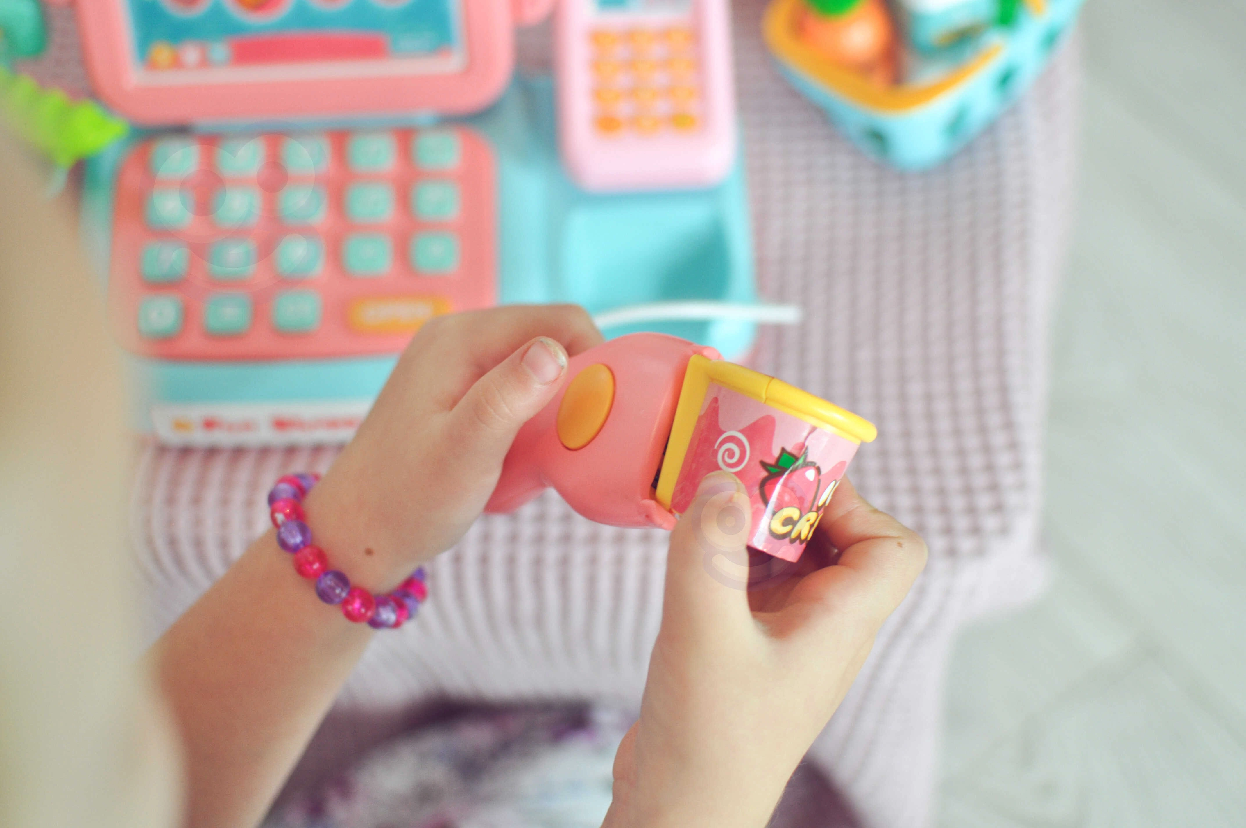 Χάρη στον αναγνώστη και την ενσωματωμένη ζυγαριά, τα παιδιά «σκανάρουν» εύκολα τα προϊόντα και ζυγίζουν φρούτα ή λαχανικά για μια ρεαλιστική εμπειρία.