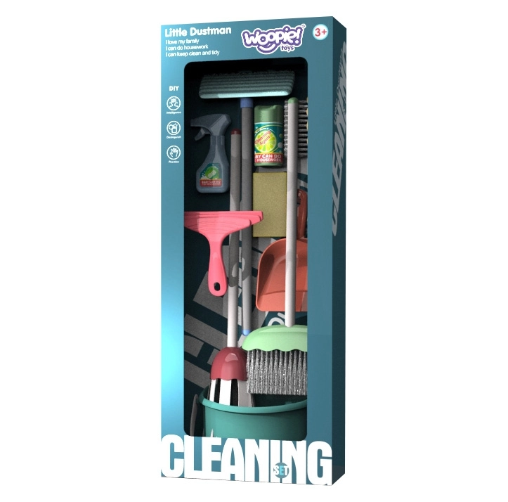 Το σετ καθαρισμού Woopie προσφέρει ένα ιδιαίτερα ρεαλιστικό αντίγραφο πραγματικών εργαλείων καθαρισμού. Το σετ είναι τέλεια προσαρμοσμένο στα παιδικά χεράκια και υποστηρίζει το παιχνίδι ρόλων, γεγονός που επηρεάζει θετικά την ανάπτυξη της υπευθυνότητας και τη συναίσθηση καθήκοντος.