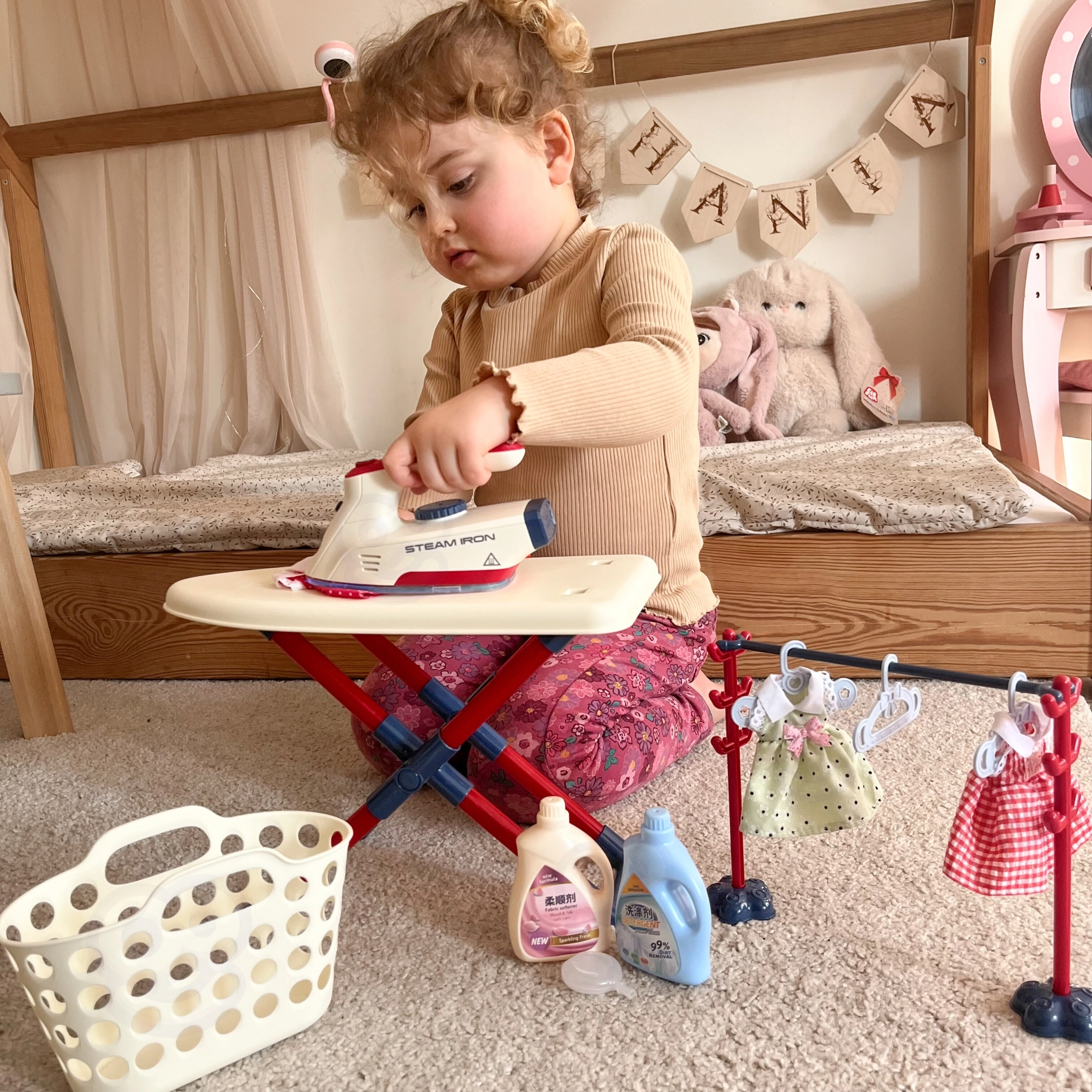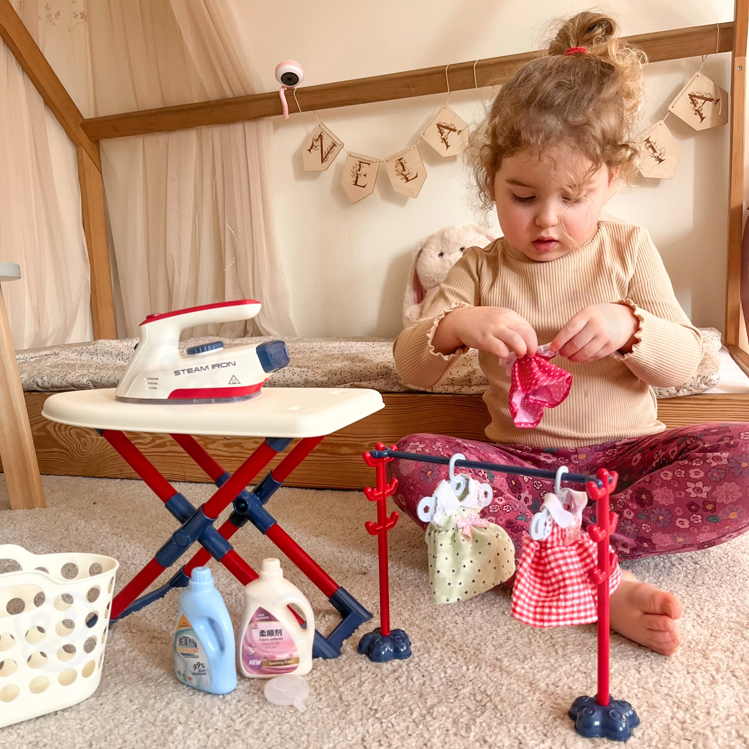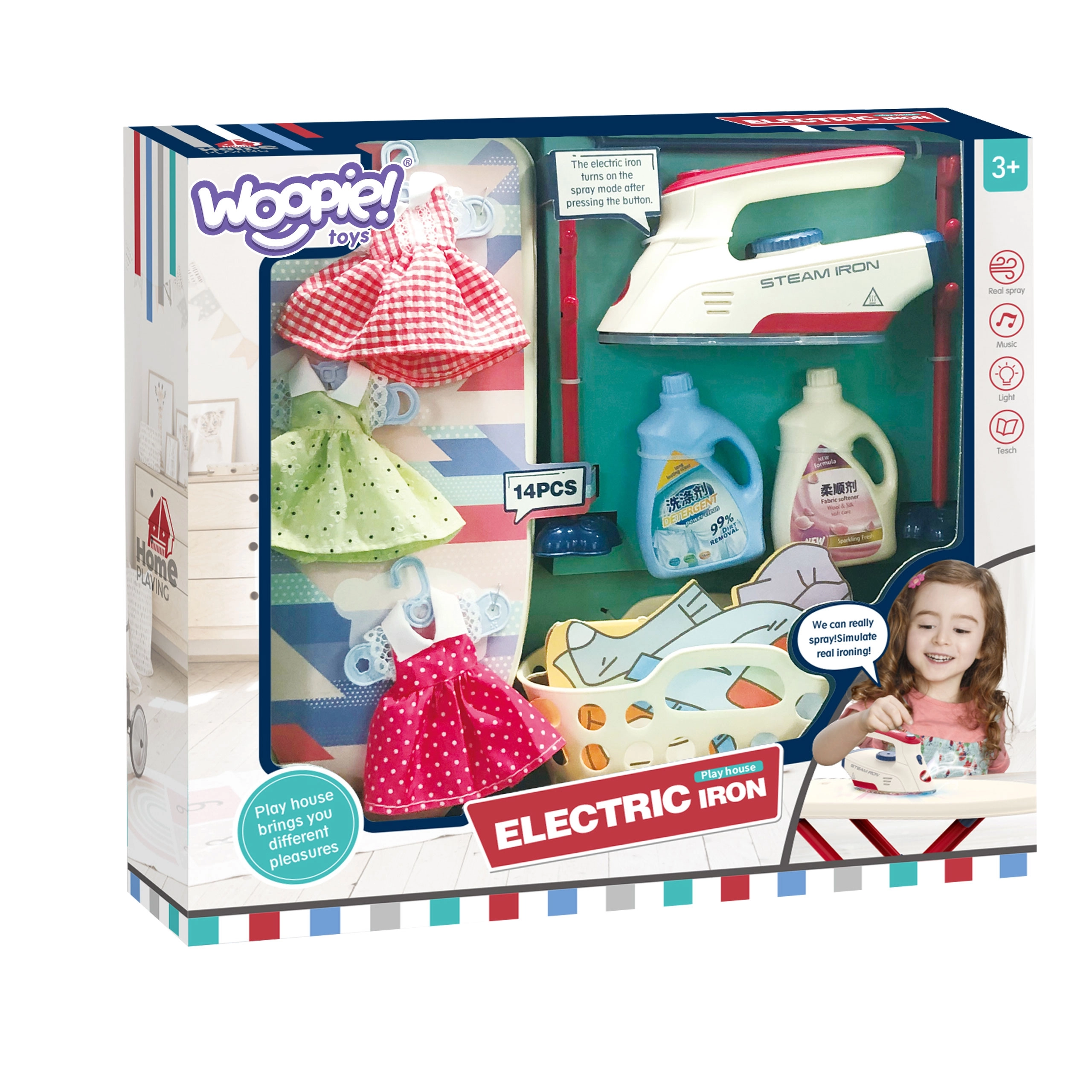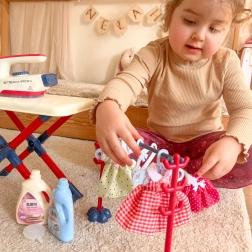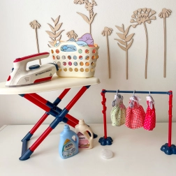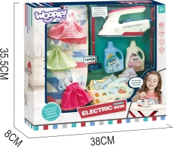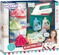Σετ σιδερώματος για παιδιά από τη μάρκα Woopie που θα προσφέρει στο παιδί σας πολλή διασκέδαση παίζοντας τη μικρή νοικοκυρά. Περιλαμβάνει σιδεράκι, σιδερώστρα, καλάθι για ρούχα και κρεμάστρες και ρουχαλάκια για κούκλες, όλα ασφαλή και προσαρμοσμένα στις ανάγκες των παιδιών.