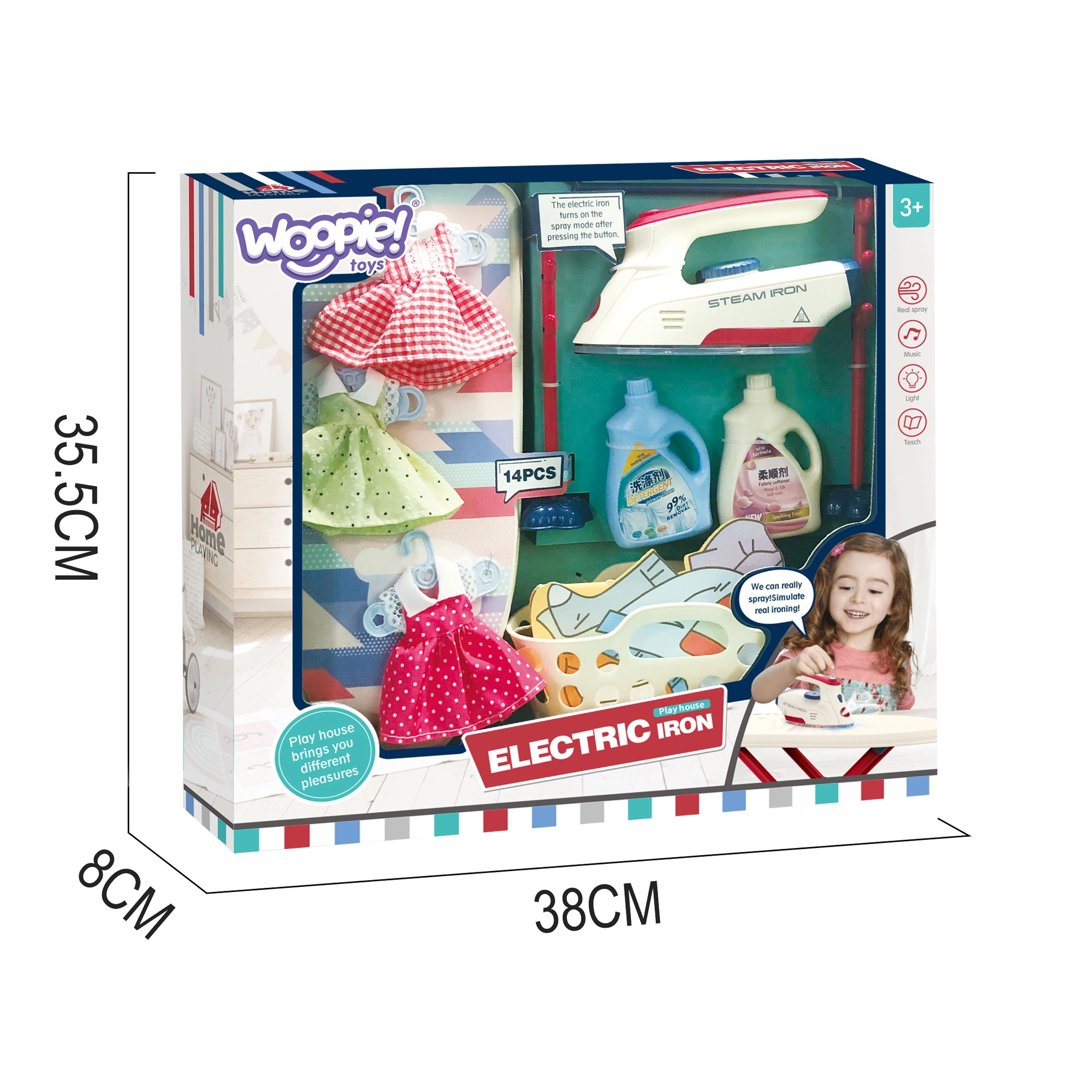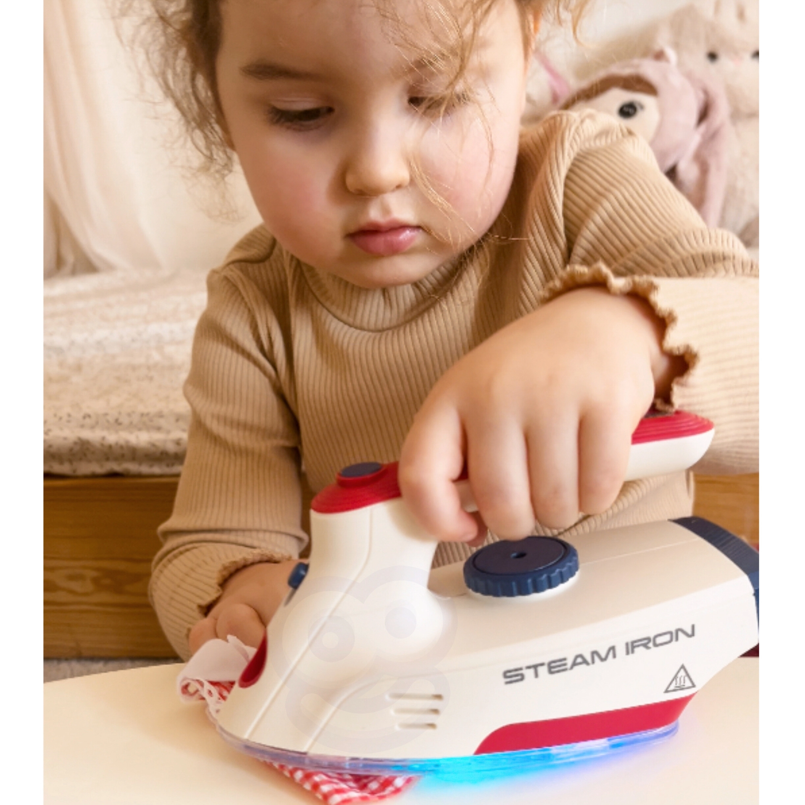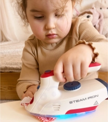 Το σιδεράκι είναι ένα ασφαλές για παιδιά παιχνίδι, καθώς δεν θερμαίνεται, αλλά είναι εξοπλισμένο με πολλές λειτουργίες που ζωντανεύουν το παιχνίδι: κουμπί για μίμηση πραγματικών ήχων σιδερώματος, LED φως και ηχητικά εφέ με τη μορφή τραγουδιών. Αυτό το σετ είναι ιδανικό για παιδιά που τους αρέσει να μιμούνται τους γονείς στις καθημερινές δραστηριότητες.
