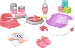 Το σετ περιλαμβάνει όλα τα απαραίτητα αξεσουάρ για τάισμα, αλλαγή πάνας και ντύσιμο, ενισχύοντας τη δημιουργικότητα και τη φροντίδα της κούκλας.